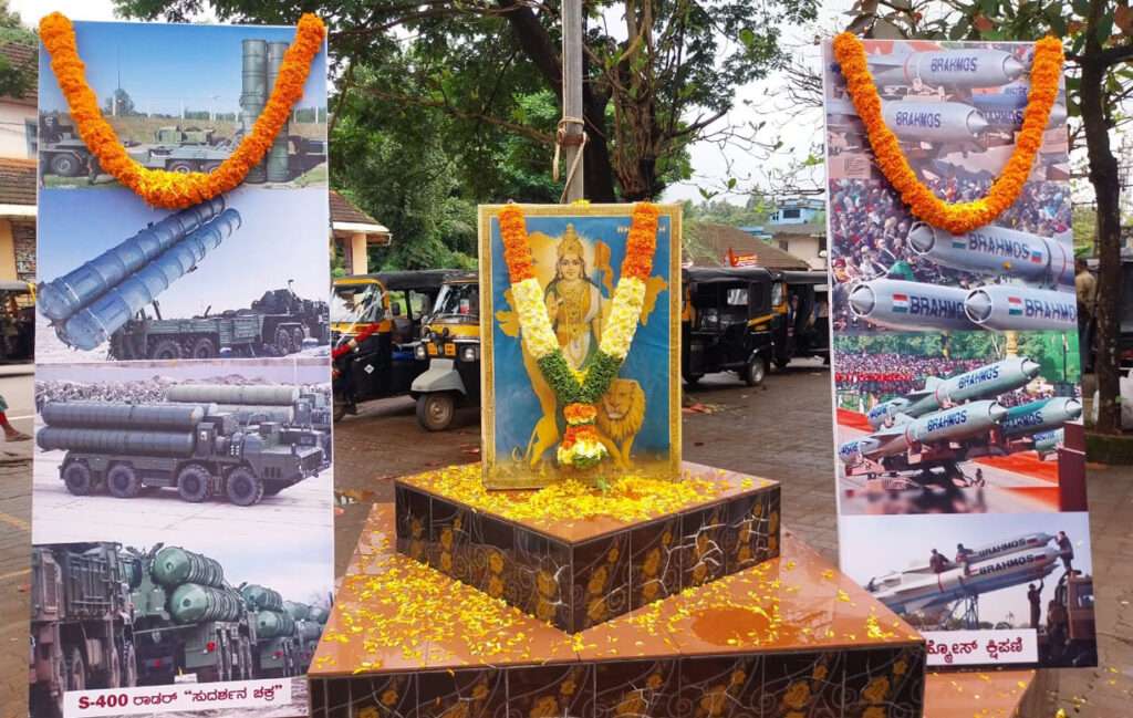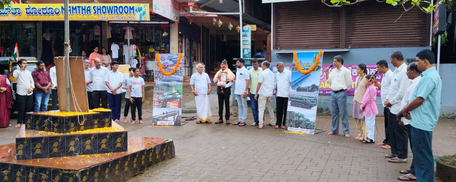 ಆಪರೇಷನ್ ಸಿಂಧೂರದಲ್ಲಿ ಪರಾಕ್ರಮ ಮೆರೆದು ಭಾರತದ ಕೀರ್ತಿ ಪತಾಕೆಯನ್ನು ಜಗತ್ತಿಗೆ ಅನಾವರಣಗೊಳಿಸಿದ ಬ್ರಹ್ಮೋಸ್ ಕ್ಷಿಪಣಿ ಹಾಗೂ ಎಸ್ 400 ರಾಡಾರ್ ಸುದರ್ಶನ ಚಕ್ರ. ಕಟೌಟ್ ಗೆ. ಮಾತೇಯರಿಂದ ಹರಸಿನ ಕುಂಕುಮ ಹಚ್ಚಿ ಪುಷ್ಪ ನಮನ ಸಲ್ಲಿಸಲಾಯಿತು. ಯಶಸ್ವಿ ಪಿ. ಭಟ್ ವಂದೇ ಮಾತರಂ ಹಾಡಿದರು. ಝಂಡಾ ಊಂಚ ನಾಗರಾಜ್ ಮುಳ್ಯ ಹಾಡಿದರು.