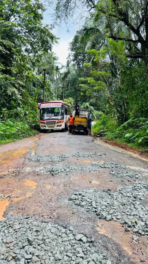 ಪಿಕ್ ಅಪ್ ವಾಹನದಲ್ಲಿ ಜಲ್ಲಿ ಮಿಶ್ರಿತ ಹುಡಿಯನ್ನು ತಂದು ಗುಂಡಿಗೆ ತುಂಬಿಸಿ ತಾತ್ಕಾಲಿಕ ವ್ಯವಸ್ಥೆ ಮಾಡಿದರು.