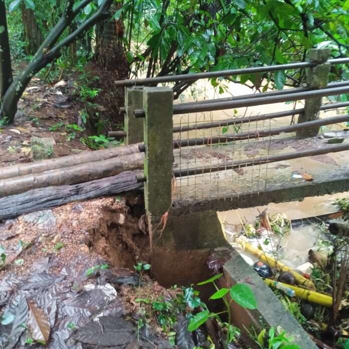 ಅಜ್ಜಾವರ ಗ್ರಾಮದ ಇರುವಂಬಳ್ಳ – ಅತ್ಯಾಡಿ – ಕುತ್ಯಾಡಿಯನ್ನು ಸಂಪರ್ಕಿಸುವ ಇರುವಂಬಳ್ಳ ಕಾಲು ಸೇತುವೆ ವಿಪರೀತವಾಗಿ ಸುರಿಯುತ್ತಿರುವ ಮಳೆಯ ಕಾರಣದಿಂದ ಕುಸಿದಿದ್ದು ಅಪಾಯದ ಸ್ಥಿತಿಯಲ್ಲಿ ಇದೆ.
