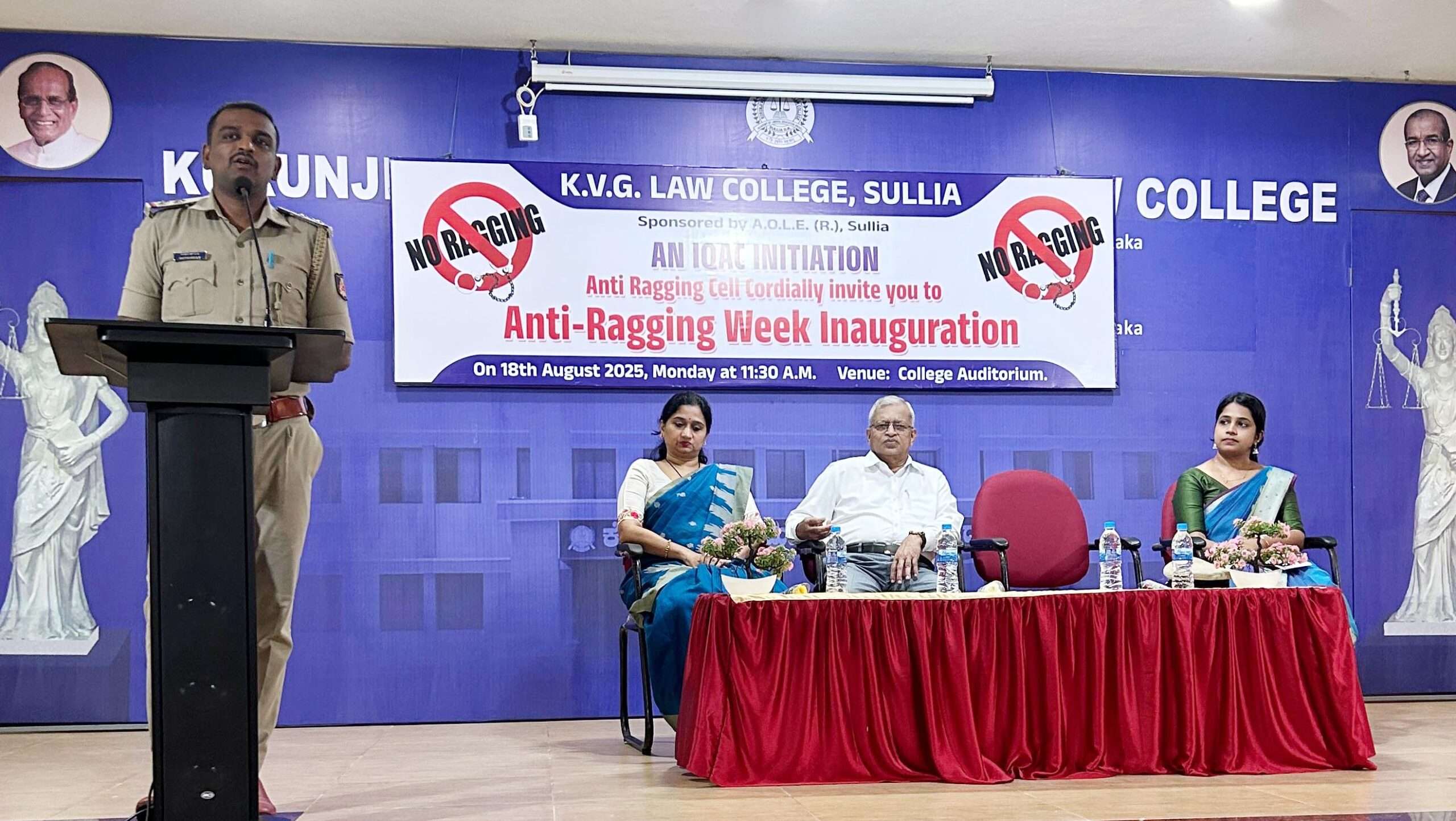 ಕೆವಿಜಿ ಕಾನೂನು ಮಹಾವಿದ್ಯಾಲಯದ ಸಭಾಂಗಣದಲ್ಲಿ ಆ. ೧೮ರಂದು ಆ್ಯಂಟಿ ರ್ಯಾಗಿಂಗ್ ಸಪ್ತಾಹವನ್ನು ಉದ್ಘಾಟಿಸಲಾಯಿತು.
