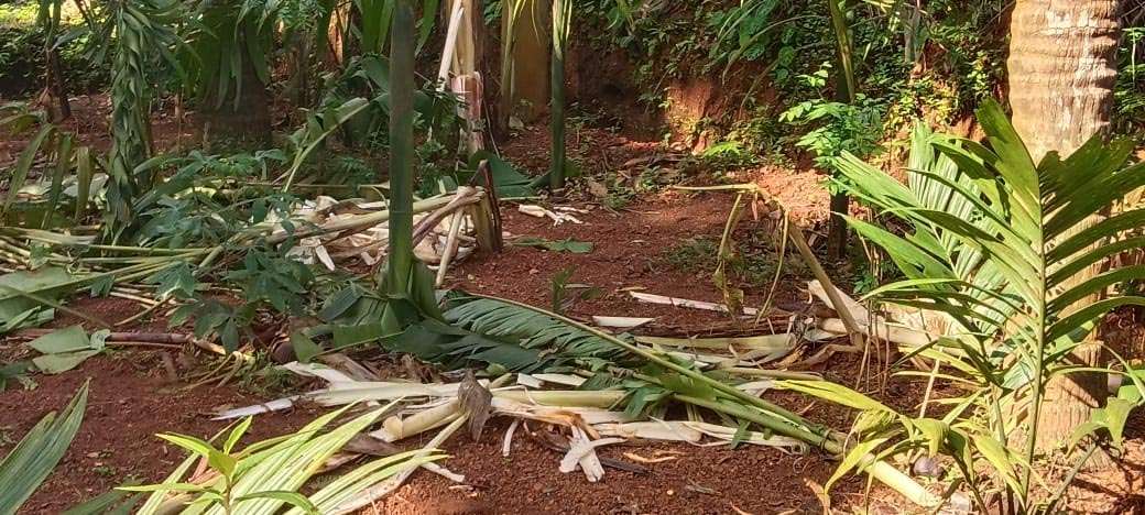 ಸುಮಾರು ಬಾಳೆಗಿಡ, ಅಡಿಕೆ ಹಾಗೂ ಕರಿಮೆಣಸಿನ ಗಿಡವನ್ನು ಹಾನಿ ಮಾಡಿದ್ದು ಅಪಾರ ನಷ್ಟವಾಗಿದೆ.