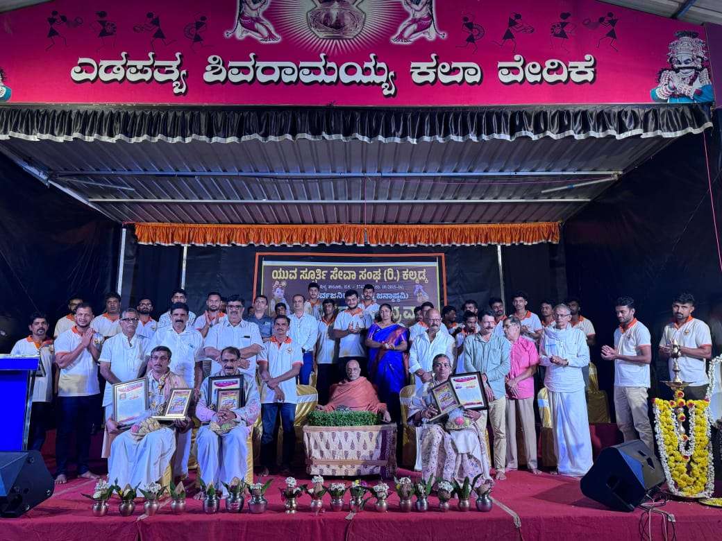 ವೇದಿಕೆಯಲ್ಲಿ ಕಲಾ ಕ್ಷೇತ್ರದಲ್ಲಿ ಅಪಾರ ಸಾಧನೆ ಮಾಡಿರುವ ರಂಗಕರ್ಮಿ ಮಹಾಬಲ ಕೆರೆಕ್ಕೋಡಿ ಇವರಿಗೆ “ಕಲ್ಮಡ್ಕ ಕಲಾ ಗೌರವ” ಹಾಗೂ ಶಿಕ್ಷಕಿ ಶ್ರೀ ಮತಿ ಗಿರಿಜಾ ಮಾಳಪ್ಪಮಕ್ಕಿ ಇವರಿಗೆ ಗೌರವ ಅಭಿನಂದನೆ ಹಾಗೂ ಕಲಾವಿದ,ಅಖಿಲ ಭಾರತ ಸಂಗೀತ ನೃತ್ಯ ಕಲಾವಿದರ ಒಕ್ಕೂಟದ ಅಧ್ಯಕ್ಷರಾದ ಸಾಯಿ ನಾರಾಯಣ ಶೆಟ್ಟಿಗದ್ದೆ ಇವರಿಗೆ ಹುಟ್ಟೂರ ಅಭಿನಂದನೆ ನೀಡಿ ಸನ್ಮಾನಿಸಿ ಗೌರವಿಸಲಾಯಿತು.ಚೊಕ್ಕಾಡಿ ಪ್ರೌಢ ಶಾಲೆ ಕುಕ್ಕುಜಡ್ಕ ಇದರ ನಿವೃತ ಮುಖ್ಯ ಗುರುಗಳಾದ ವಿ ಸುಬ್ರಾಯ ಓಣಿಯಡ್ಕ ಅಭಿನಂದನ ಭಾಷಣ ಮಾಡಿದರು. ವಕೀಲರ ಸಂಘ ಸುಳ್ಯ ಇದರ ಉಪಾಧ್ಯಕ್ಷರಾದ ದಿಲೀಪ್ ಬಾಬ್ಲುಬೆಟ್ಟು, ಪಂಬೆತ್ತಾಡಿ ಕೃಷಿ ಪತ್ತಿನ ಸಹಕಾರಿ ಸಂಘದ ಉಪಾಧ್ಯಕ್ಷರಾದ ಗಣೇಶ ಭೀಮಗುಳಿ ಹಾಗೂ ಯುವಸ್ಪೂರ್ತಿ ಸೇವಾ ಸಂಘದ ಪೂರ್ವಾಧ್ಯಕ್ಷರುಗಳಾದ ಶೇಷಪ್ಪ ಮಾಳಪ್ಪಮಕ್ಕಿ, ಹರೀಶ್ ಮಾಳಪ್ಪಮಕ್ಕಿ, ಕರುಣಾಕರ ಶೆಟ್ಟಿಗದ್ದೆ,ಶ್ರೀ ಅಶೋಕ್ ಗೊಳ್ತಾಜೆ, ದೇವಿಪ್ರಸಾದ್ ಮರಕ್ಕಡ ಹಾಗೂ ಉಪಾಧ್ಯಕ್ಷರಾದ ಚಿದಾನಂದ ಮಾಳಪ್ಪಮಕ್ಕಿ,ಕಾರ್ಯದರ್ಶಿ ನವೀನ್ ಮೂಲೆಮನೆ ವೇದಿಕೆಯಲ್ಲಿ ಉಪಸ್ತಿತರಿದ್ದರು.