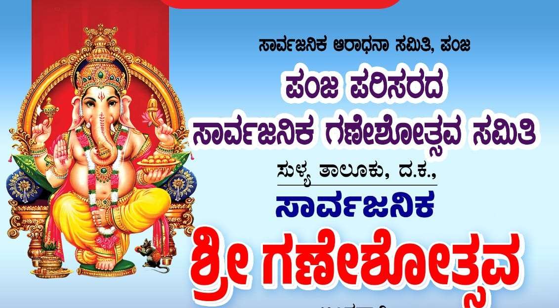 ಪಂಜ ಪರಿಸರದ ಸಾರ್ವಜನಿಕ ಶ್ರೀ ಗಣೇಶೋತ್ಸವ ಸಮಿತಿ-2025ಇದರ ವತಿಯಿಂದ ಪಂಜ ಪರಿಸರದ ಸಾರ್ವಜನಿಕ ಶ್ರೀ ಗಣೇಶೋತ್ಸವ ಆ.27 ರಿಂದ ಆ.29 ತನಕ ಪಂಜ ಶ್ರೀ ಸದಾಶಿವ ಪರಿವಾರ ಪಂಚಲಿಂಗೇಶ್ವರ ದೇಗುಲದ ವಠಾರದಲ್ಲಿ ವಿಜೃಂಭಣೆಯಿಂದ ಜರುಗಲಿದೆ.