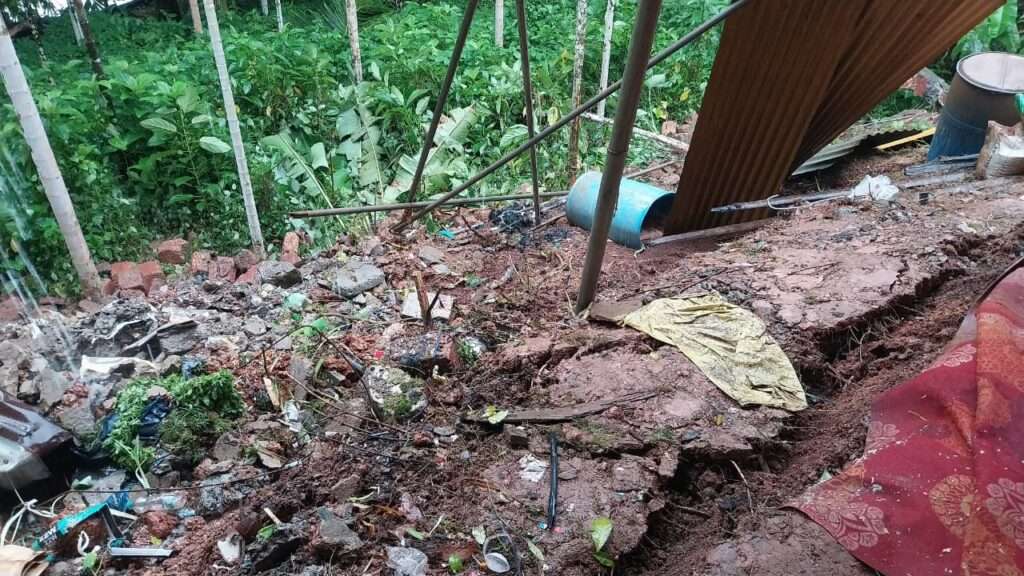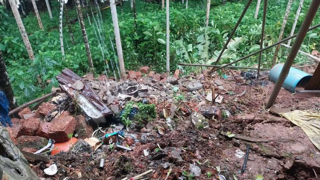 ಎಡೆಬಿಡದೆ ಸುರಿಯುತ್ತಿರುವ ಭಾರೀ ಮಳೆಗೆ ಆ. ೨೭ ರಂದು ರಾತ್ರಿ ಹಳೆಗೇಟಿನ ವಸಂತ ಕಟ್ಟೆಯ ಹಿಂಭಾಗದ ತಡೆಗೋಡೆ ಕುಸಿತ ಉಂಟಾಗಿ ನಷ್ಟ ಸಂಭವಿಸಿದೆ.