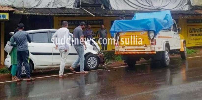 ಈ ಸಮಯದಲ್ಲಿ ಪೈಚಾರ್ ಕಡೆಯಿಂದ ಸುಳ್ಯ ಕಡೆ ಬರುತ್ತಿದ್ದ ಪಿಕಪ್ ನಿಯಂತ್ರಣ ತಪ್ಪಿ ರಸ್ತೆ ಬದಿಯಲ್ಲಿ ನಿಲ್ಲಿಸಿದ ಕಾರಿಗೆ ಡಿಕ್ಕಿ ಹೊಡೆದಿದೆ. ಪರಿಣಾಮ ಕಾರಿನ ಮುಂಭಾಗ ಜಖಂಗೊಂಡಿದೆ.