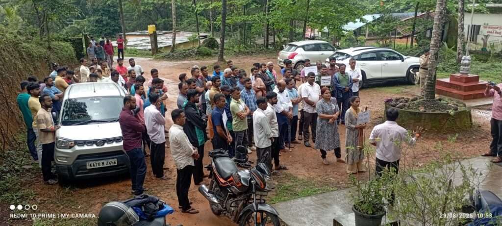 ಕೊಲ್ಲಮೊಗ್ರು ಗ್ರಾ.ಪಂ ಸಿಬ್ಬಂದಿಯೋರ್ವರನ್ನು ಕರ್ತವ್ಯ ಲೋಪ ಆಧಾರದಲ್ಲಿ ಮೂರು ತಿಂಗಳ ಹಿಂದೆ ಅಮಾನತಿಲ್ಲಿಟ್ಟಿದ್ದು ಅವರು ಮತ್ತೆ ಕರ್ತವ್ಯಕ್ಕೆ ಹಾಜರಾಗಿರುವುದನ್ನು ಪ್ರಶ್ನಿಸಿ ಗ್ರಾಮಸ್ಥರು ಆ . 29 ಗ್ರಾ.ಪಂ ಎದುರು ಗ್ರಾಮಸ್ಥರು ಪ್ರತಿಭಟನೆ ನಡೆಸಿದ್ದಾರೆ.