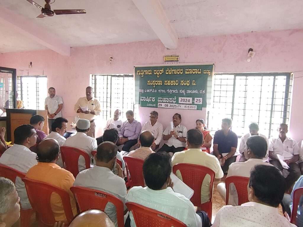 ಗುತ್ತಿಗಾರು ರಬ್ಬರ್ ಬೆಳೆಗಾರರ ಮಾರಾಟ ಮತ್ತು ಸಂಸ್ಕರಣ ಸಹಕಾರಿ ಸಂಘ ಇದರ ವಾರ್ಷಿಕ ಮಹಾಸಭೆಯು ಸಂಘದ ಅಧ್ಯಕ್ಷ ನಿತ್ಯಾನಂದ ಮುಂಡೋಡಿ ಅವರ ಅಧ್ಯಕ್ಷತೆಯಲ್ಲಿ ಸಂಘದ ಕಛೇರಿಯಲ್ಲಿ ಆ. 30ರಂದು ನಡೆಯಿತು.