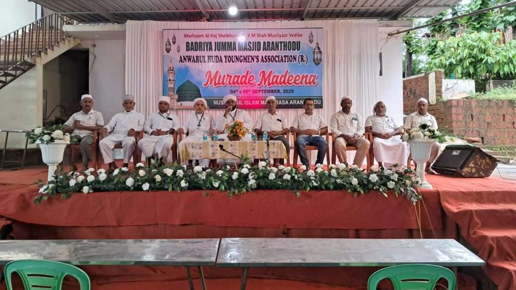 ಅರಂತೋಡು ಬದ್ರಿಯಾ ಜುಮ್ಮಾ ಮಸೀದಿ ಮತ್ತು ಅನ್ವಾರುಲ್ ಹುದಾ ಯಂಗ್ ಮೆನ್ಸ್ ಅಸೋಸಿಯೇಶನ್ ನುಸ್ರತುಲ್ ಇಸ್ಲಾಂ ಮದರಸ ಅರಂತೋಡು ಇದರ ಜಂಟಿ ಆಶ್ರಯದಲ್ಲಿ ಈದ್ ಮಿಲಾದ್ ಕಾರ್ಯಕ್ರಮಕ್ಕೆ ಅರಂತೋಡು ಮಸೀದಿ ವಠಾರದಲ್ಲಿ ಚಾಲನೆ ನೀಡಲಾಯಿತು.ಅಧ್ಯಕ್ಷತೆಯನ್ನು ಬದ್ರಿಯಾ ಜುಮಾ ಮಸೀದಿ ಆಡಳಿತ ಮಂಡಳಿ ಅಧ್ಯಕ್ಷ ಅಶ್ರಫ್ ಗುಂಡಿ ವಹಿಸಿದರು.