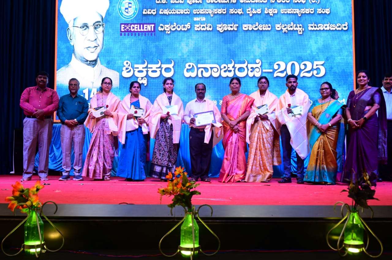 ಎಕ್ಸಲೆಂಟ್ ಪದವಿಪೂರ್ವ ಕಾಲೇಜು ಮೂಡುಬಿದರೆ ಇಲ್ಲಿ ನಡೆದ ದಕ್ಷಿಣ ಕನ್ನಡ ಜಿಲ್ಲೆಯ ಪ್ರಾಚಾರ್ಯರ ಸಂಘ ಹಾಗೂ ವಿಷಯ ಉಪನ್ಯಾಸಕರ ಹಾಗೂ ದೈಹಿಕ ಶಿಕ್ಷಣ ಶಿಕ್ಷಕರ ಸಂಘ ಹಾಗೂ ಎಕ್ಸಲೆಂಟ್ ಪದವಿಪೂರ್ವ ಕಾಲೇಜು ಇವರ ಆಶ್ರಯದಲ್ಲಿ ಸೆ. ೧೪ರಂದು ನಡೆದ ಶಿಕ್ಷಕರ ದಿನಾಚರಣೆ – ೨೦೨೫ರ ಕಾರ್ಯಕ್ರಮದಲ್ಲಿ ಸನ್ಮಾನಿಸಲಾಯಿತು.
