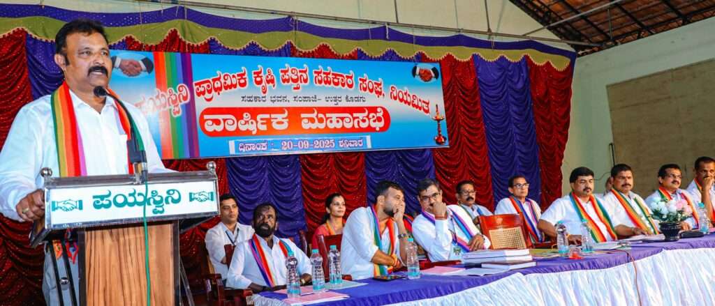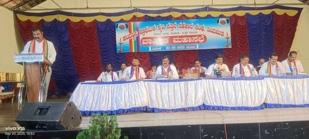 ಸಂಪಾಜೆ ಪಯಸ್ವಿನಿ ಪ್ರಾಥಮಿಕ ಕೃಷಿ ಪತ್ತಿನ ಸಹಕಾರಿ ಸಂಘದ 2024- 25 ನೇ ಸಾಲಿನ ವಾರ್ಷಿಕ ಮಹಾಸಭೆಯು ಸೆಪ್ಟೆಂಬರ್ 20ರಂದು ಸಂಪಾಜೆ ಶ್ರೀ ಪಂಚಲಿಂಗೇಶ್ವರ ದೇವಸ್ಥಾನದ ಸಭಾಭವನದಲ್ಲಿ ನಡೆಯಿತು. ಸಂಘದ ಅಧ್ಯಕ್ಷ ಅನಂತ ಎನ್. ಸಿ. ಅಧ್ಯಕ್ಷತೆ ವಹಿಸಿದ್ದರು. ಪ್ರಸಕ್ತ ವರ್ಷ ಒಟ್ಟು ರೂ. 48,79,99,890.60 ವ್ಯವಹಾರ ನಡೆಸಿದ್ದು, ರೂ. 38,58,626.28 ನಿವ್ವಳ ಲಾಭ ಗಳಿಸಿದೆ. ಶೇ. 9 ಡಿವಿಡೆಂಟ್ ನೀಡಲಾಗುವುದು ಎಂದು ಅಧ್ಯಕ್ಷರು ತಿಳಿಸಿದರು.