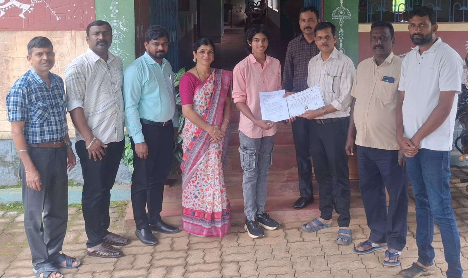 ರೂ7500 ಹಾಗೂ ಪ್ರಶಸ್ತಿ ಪತ್ರವನ್ನು ಕ್ಷೇತ್ರ ಶಿಕ್ಷಣಾಧಿಕಾರಿಗಳ ಕಛೇರಿಯ ಪತ್ರಾಂಕಿತ ವ್ಯವಸ್ಥಾಪಕರಾದ ಕಿಶೋರ್ ಕುಮಾರ್ ಯು.ವಿ ಯವರು ವಿದ್ಯಾರ್ಥಿಗೆ ವಿತರಿಸಿದರು.