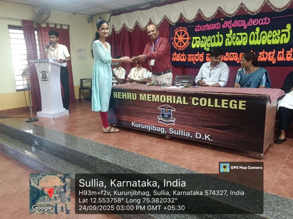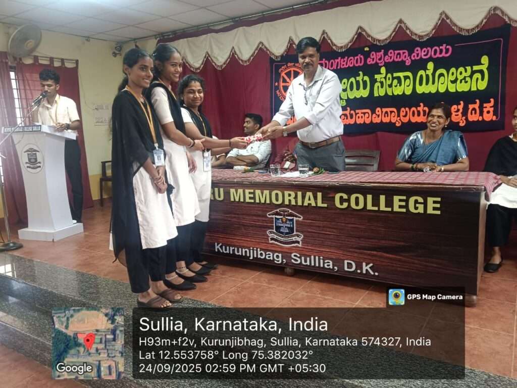 ಸುಳ್ಯ ನೆಹರು ಮೆಮೋರಿಯಲ್ ಕಾಲೇಜಿನಲ್ಲಿ ಮಂಗಳೂರು ವಿಶ್ವವಿದ್ಯಾನಿಲಯ ರಾಷ್ಟ್ರೀಯ ಸೇವಾ ಯೋಜನಾ ಘಟಕದ ವತಿಯಿಂದ ಸೆ.24 ರಂದು ರಾಷ್ಟ್ರೀಯ ಸೇವಾ ಯೋಜನೆ ದಿನಾಚರಣೆಯನ್ನು ಆಚರಿಸಲಾಯಿತು.