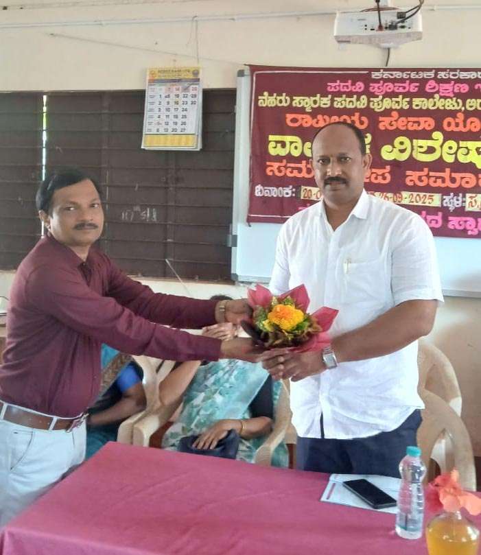 ದಿನಾಂಕ 26.09.2025 ನೇ ಶುಕ್ರವಾರ 17ನೇ ಯ ವಾರ್ಷಿಕ ವಿಶೇಷ ಶಿಬಿರದ ಸಮಾರೋಪ ಸಮಾರಂಭ ನಡೆಯಿತು ಮುಖ್ಯ ಅತಿಥಿಗಳಾಗಿ ಹಿರಿಯ ವಿದ್ಯಾರ್ಥಿ ಅರಂತೋಡು ತೊಡಿಕಾನ ಕೃಷಿ ಪತ್ತಿನ ಸಹಕಾರಿ ಸಂಘದ ಅಧ್ಯಕ್ಷರಾದ ಸಂತೋಷ್ ಕುತ್ತಮೊಟ್ಟೆಯವರು ವಹಿಸಿ ಎನ್ ಎಸ್ ಎಸ್ ಸ್ವಯಂಸೇವಕರಿಗೆ ಶಿಸ್ತು, ಸಂಸ್ಕಾರ, ಧೈರ್ಯ ಬೆಳೆಸುತ್ತದೆ ಎಂದು ನುಡಿದರು ಕಾರ್ಯಕ್ರಮದ ಅಧ್ಯಕ್ಷತೆಯನ್ನು ಪ್ರಭಾರ ಪ್ರಾಂಶುಪಾಲರಾದ ಸುರೇಶ್ ವಾಗ್ಲೆ ವಹಿಸಿದ್ದರು ಶಿಬಿರಾಧಿಕಾರಿಗಳಾಗಿ ಲಿಂಗಪ್ಪ ಎಂ ರಸಾಯನ ಶಾಸ್ತ್ರ ಉಪನ್ಯಸಕರು, ಸಹ ಶಿಬಿರಾಧಿಕಾರಿಗಳಾಗಿ ಭಾಗ್ಯಶ್ರೀ ಎಚ್ ಬಿ ಗಣಿತಶಾಸ್ತ್ರ ಉಪನ್ಯಾಸಕಿ ಶಿಬಿರವನ್ನು ಅಚ್ಚುಕಟ್ಟಾಗಿ ಮುನ್ನಡೆಸಿದರು.ದಿನನಿತ್ಯದ ಯೋಗಾಸನ ತರಗತಿಗಳನ್ನು ಪ್ರಭಾರ ಪ್ರಾಂಶುಪಾಲರು ಮತ್ತು ಭೌತಶಾಸ್ತ್ರ ಉಪನ್ಯಾಸಕರಾದ ಸುರೇಶ್ ವಾಗ್ಲೆ ನಡೆಸಿಕೊಟ್ಟರು.