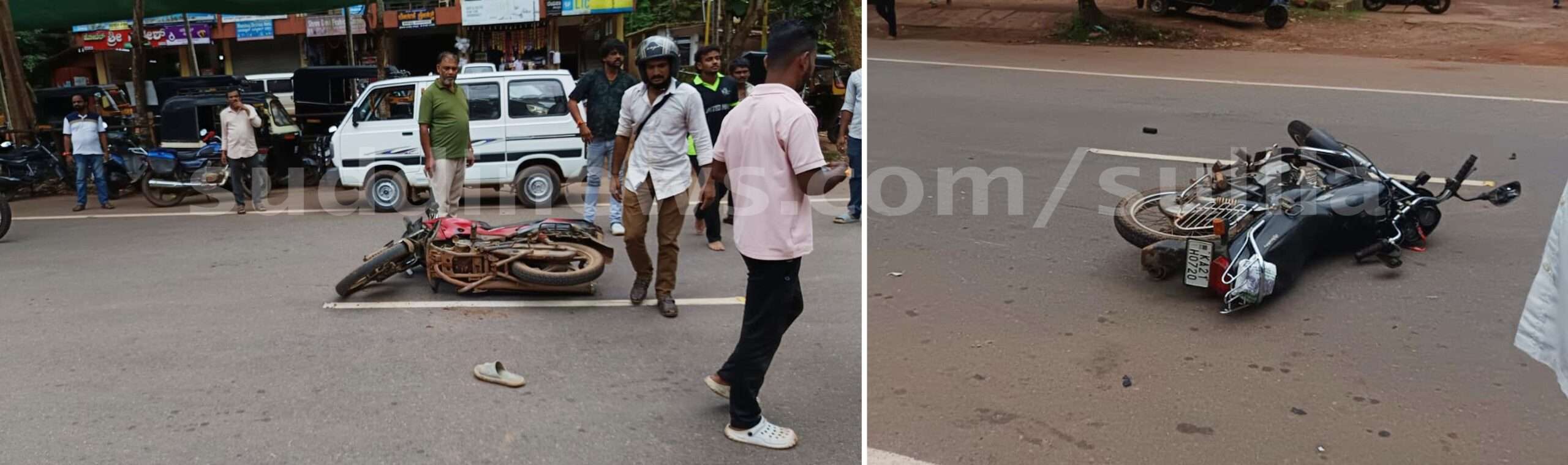 ಜಾಲ್ಸೂರು ಪೇಟೆಯಲ್ಲಿ ಬೈಕ್ ಗಳ ನಡುವೆ ಅಪಘಾತ October 11, 2025 0 FacebookTwitterWhatsApp ಜಾಲ್ಸೂರು ಪೇಟೆಯಲ್ಲಿ ಎರಡುಬೈಕ್ ಗಳ ನಡುವೆ ಅಪಘಾತವಾದ ಘಟನೆ ವರದಿಯಗಿದೆ.ಸುಳ್ಯದಿಂದ ಜಾಲ್ಸೂರು ಕಡೆಗೆ ಹೋಗುವ ಬೈಕ್ ಹಾಗೂ ಕನಕಮಜಲು ಕಡೆಯಿಂದ ಸುಳ್ಯಕ್ಕೆ ಬರುತ್ತಿದ್ದ ಬೈಕ್ ನಡುವೆ ಢಿಕ್ಕಿ ಸಂಭವಿಸಿದೆ. ಪರಿಣಾಮ ಸವಾರರಿಗೆ ಗಾಯಗಳಾಗಿವೆ ಎಂದು ತಿಳಿದುಬಂದಿದೆ.