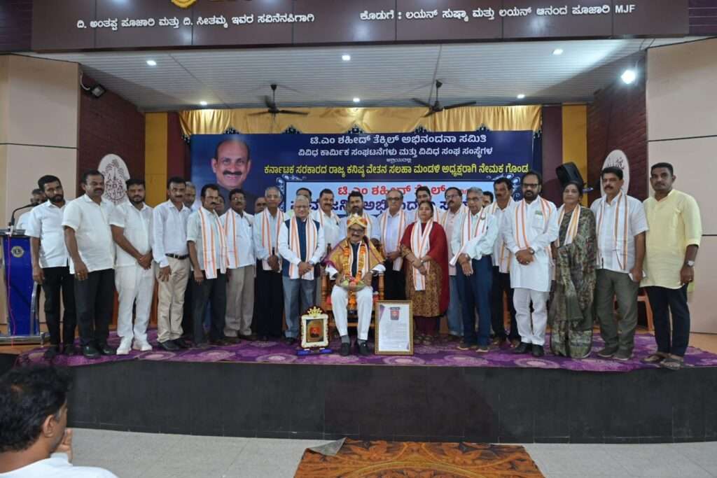 ಅಭಿನಂದನೆ ಸ್ವೀಕರಿಸಿದ ಕರ್ನಾಟಕ ರಾಜ್ಯ ಕನಿಷ್ಠ ವೇತನ ಸಲಹಾ ಮಂಡಳಿ ಅಧ್ಯಕ್ಷ ಟಿ.ಎಂ.ಶಹೀದ್ ತೆಕ್ಕಿಲ್ ಮಾತನಾಡಿದರು.