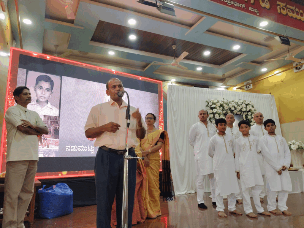 ನಮ್ಮ ನಡುಮುಟ್ಲು ಮನೆತನ ರಾಜರ ಆಡಳಿತ ಸಂದರ್ಭದಲ್ಲಿ ಉಂಬಳಿ ಬಂದ ಜಾಗದಲ್ಲಿ ನೆಲೆಸಿತ್ತು. ರಥಕ್ಕೆ ಎಣ್ಣೆ ಕೊಡುತಿದ್ದ ಮನೆತನತವಾಗಿತ್ತು. ನಮ್ಮ ಚಿಕ್ಕಪ್ಪ ಜನಾರ್ದನ ಗೌಡರು ನಮ್ಮನ್ನೆಲ್ಲಾ ಸೇರಿಸಿ ಕುಟುಂಬದ ಧರ್ಮದೈವದ ಜೀರ್ಣೋದ್ಧಾರ ಮಾಡಿದ ವ್ಯಕ್ತಿ. ೩೯ ಮನೆಗಳಿರುವ ನಮ್ಮ ನಡುಮುಟ್ಲು ಕುಟುಂಬದಲ್ಲಿ ಠೇವಣಿ ಇಟ್ಟು ಅದರ ಹಣದಿಂದಲೇ ಧರ್ಮ ನಡಾವಳಿ ನಡೆಸಲು ಹಾದಿ ತೋರಿದ ಪುಣ್ಮಾತ್ಮ ಅವರು. ಅಂತಹ ಮುಂದಾಲೋಚನೆ ಅವರದ್ದಾಗಿತ್ತು. ಅವರ ಅಂತಿಮ ಕ್ಷಣಗಳ ಒಂದು ಆಸೆ ಇದೆ ಅದೆಂದರೆ ತರುವಾಡು ಮನೆ ನಿರ್ಮಿಸುವುದಾಗಿತ್ತು. ಅದನ್ನು ಮಾಡಲು ನಾವು ಪ್ರಯತ್ನಿಸುತ್ತೇವೆ ಎಂದರು.
