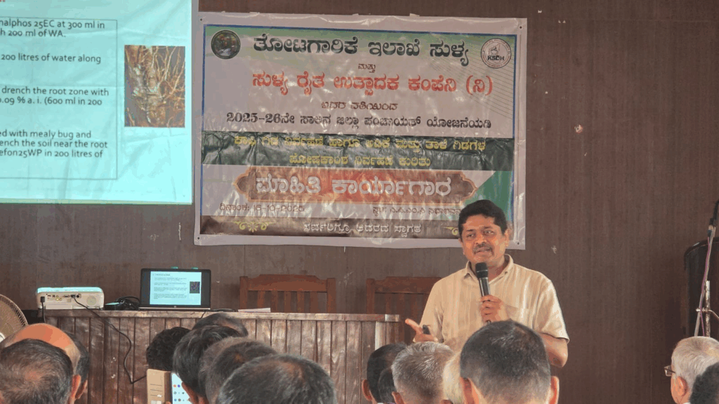 ಸಹಾಯಕ ತೋಟಗಾರಿಕಾ ಅಧಿಕಾರಿಯಾದ ಅರಬಣ್ಣ ಪೂಜೇರಿ ಸ್ವಾಗತಿಸಿದರು ಮತ್ತು ಸುಳ್ಯ ರೈತ ಉತ್ಪಾದಕ ಸಂಸ್ಥೆಯ ಮುಖ್ಯಕಾರ್ಯನಿರ್ವಹಣಾಧಿಕಾರಿ ಹರೀಶ್ ಕೆ ರವರು ಕಾರ್ಯಕ್ರಮವನ್ನು ನಿರೂಪಿಸಿದರು.