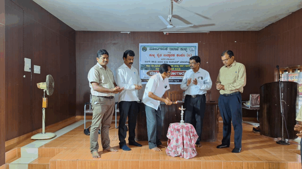 ತೋಟಗಾರಿಕೆ ಇಲಾಖೆ ಸುಳ್ಯ ಮತ್ತು ಸುಳ್ಯ ರೈತ ಉತ್ಪಾದಕ ಕಂಪನಿ ನಿ. ಇದರ ಸಹಯೋಗದಲ್ಲಿ ರೈತರಿಗೆ ವಿಶೇಷವಾಗಿ 6 ತಿಂಗಳವರೆಗೆ ಕಾಫಿ ಗಿಡ ನಿರ್ವಹಣೆಯ ಮತ್ತು ಮಣ್ಣಿನಲ್ಲಿ ಪೋಷಕಾಂಶಗಳ ನಿರ್ವಹಣೆಯ ಕುರಿತು ತರಬೇತಿ ಕಾರ್ಯಕ್ರಮವನ್ನು ಸುಳ್ಯ ಎಪಿಎಂಸಿ ಸಭಾಭವನದಲ್ಲಿ ಜರಗಿತು.