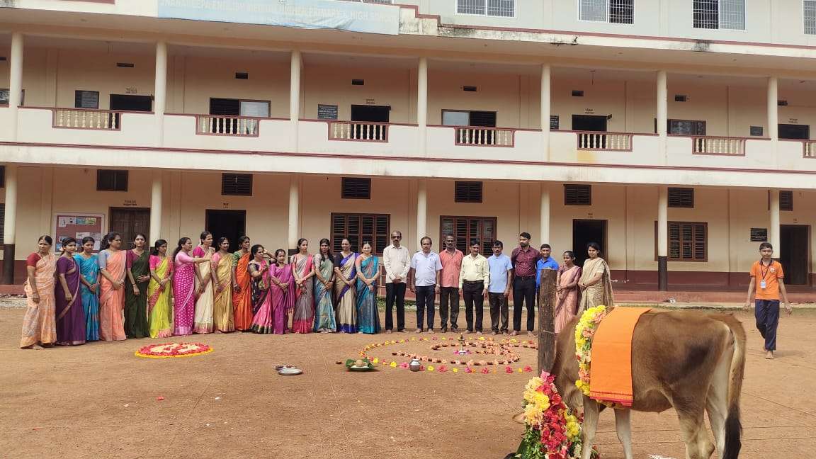 ಗೋವುಗಳ ಮಹತ್ವವನ್ನು ತಿಳಿಸುವ ಪ್ರಯತ್ನದೊಂದಿಗೆ ಶಾಲೆಯಲ್ಲಿ ಗೋವನ್ನು ಜಳಕ ಮಾಡಿಸಿ, ಹೂಹಾರ ಹಾಕಿ, ಅರಸಿನ ಕುಂಕುಮ ಹಚ್ಚಿ ದೀಪಾರತಿ ಬೆಳಗಿಸಿ ಹಣ್ಣು -ಹಂಪಲುಗಳನ್ನು ನೀಡಲಾಯಿತು. ಗೋಮಾತೆಗೆ ಪ್ರದಕ್ಷಿಣೆ ಮಾಡಿದರೆ ತ್ರಿಲೋಕ ಪ್ರದಕ್ಷಿಣೆ ಮಾಡಿದ ಪುಣ್ಯ ಸಿಗುತ್ತದೆ ಎಂಬಂತೆ ಆಚರಿಸಲಾಯಿತು. ಶಾಲೆಯಲ್ಲಿ ಆಡಳಿತ ಮಂಡಳಿಯವರು, ಶಿಕ್ಷಕರು, ವಿದ್ಯಾರ್ಥಿಗಳು ಪ್ರದಕ್ಷಿಣೆ ಹಾಕಿ ಆಶೀರ್ವಾದ ಪಡೆದುಕೊಂಡರು. ಶಾಲಾ ಮಕ್ಕಳಿಂದ ಕುಣಿತ ಭಜನೆ ನಡೆಸಲಾಯಿತು.