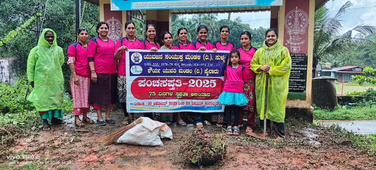 ಯುವಜನ ಸಂಯುಕ್ತ ಮಂಡಳಿ (ರಿ) ಸುಳ್ಯ, ಶೌರ್ಯ ಯುವತಿ ಮಂಡಲ ರಿ. ಪೈಲಾರು ನೇತೃತ್ವದಲ್ಲಿ ಪಂಚಸಪ್ತಮಿ 2025, 75 ದಿನಗಳ ಸ್ವಚ್ಛತಾ ಅಭಿಯಾನದ ಪ್ರಯುಕ್ತ ಪೈಲಾರಿನ ಬಸ್ ನಿಲ್ದಾಣ ಮತ್ತು ಸುತ್ತಲಿನ ಪರಿಸರವನ್ನು ಈ ದಿನ ಸ್ವಚ್ಛ ಮಾಡಲಾಯಿತು. ಈ ಸಂದರ್ಭದಲ್ಲಿ ಶೌರ್ಯ ಯುವತಿ ಮಂಡಲದ ಅಧ್ಯಕ್ಷೆ ಭವ್ಯ ನಾಯರ್ ಕಲ್ಲು ಕಾರ್ಯದರ್ಶಿ ಸೌಂದರ್ಯ ಕಡಪಳ ಉಪಾಧ್ಯಕ್ಷೆ ಲೋಕೇಶ್ವರಿ ನಿರ್ದೇಶಕರಾದ ರಾಜೀವಿ ಗೋಳ್ಯಾಡಿ, ಕಮಲಾಕ್ಷಿ ಗುಡ್ಡೆಮನೆ, ಶ್ವೇತ ನಾಯರ್ ಕಲ್ಲು, ಲಲಿತಾ ಲಕ್ಷ್ಮಿ, ಚರಿಷ್ಮ ಕಡಪಳ, ಶ್ರೀಲತಾ ಕುಸುಮಾವತಿ ಕೋಡ್ತುಗುಳಿ ಉಪಸ್ಥಿತರಿದ್ದರು.