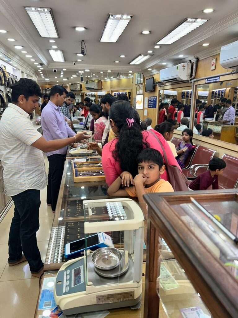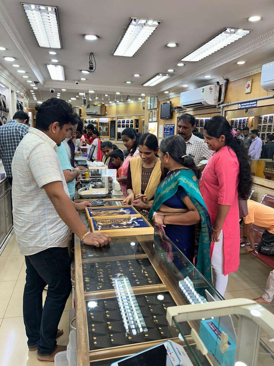 ಮಳಿಗೆಯಲ್ಲಿ ಕಿಕ್ಕಿರಿದು ಚಿನ್ನಾಭರಣ ಖರೀದಿಸುತ್ತಿರುವ ಗ್ರಾಹಕರು