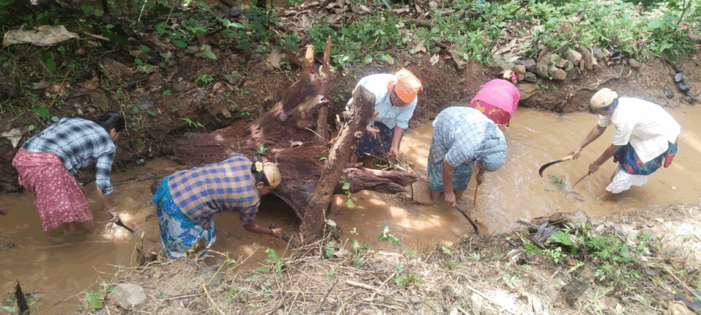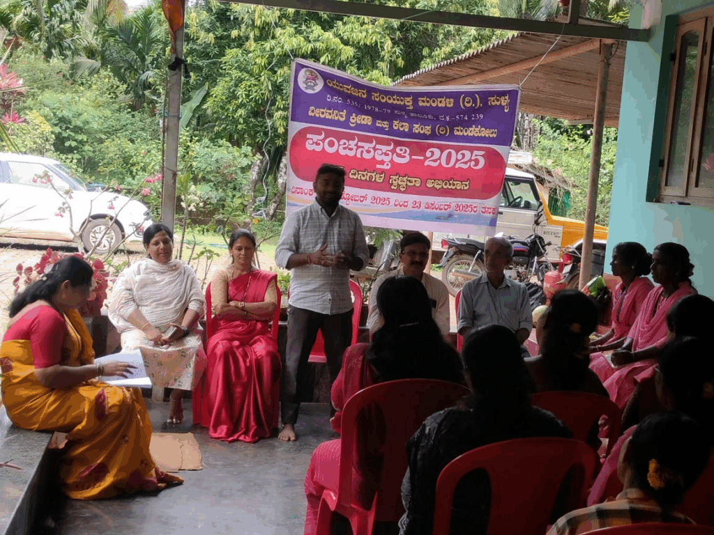 ಯುವಜನ ಸಂಯುಕ್ತ ಮಂಡಳಿ ಸುಳ್ಯ, ವೀರವನಿತೆ ಕ್ರೀಡಾ ಮತ್ತು ಕಲಾ ಸಂಘ ಮಂಡೆಕೋಲು, ಗ್ರಾಮ ಪಂಚಾಯತ್ ಮಂಡೆಕೋಲು ಇದರ ವತಿಯಿಂದ ಪಂಚಸಪ್ತತಿ 4 ನೆಯ ಕಾರ್ಯಕ್ರಮ ಉದ್ಯೋಗ ಖಾತರಿ ಯೋಜನೆಯಡಿ ತೋಡಿನ ಹೂಳು ಎತ್ತುವ ಕಾಯಕ ತಂಡದ ಮಹಿಳೆಯರಿಗೆ ಮಹಿಳೆಯರ ಆರೋಗ್ಯ,ಶುಚಿತ್ವ ದ ಬಗ್ಗೆ ಮಾಹಿತಿ ಕಾರ್ಯಗಾರ ಪಾತಿಕಲ್ಲು ಹರಿಶ್ಚಂದ್ರ ಗೌಡರ ಮನೆಯಲ್ಲಿ ನಡೆಯಿತು .