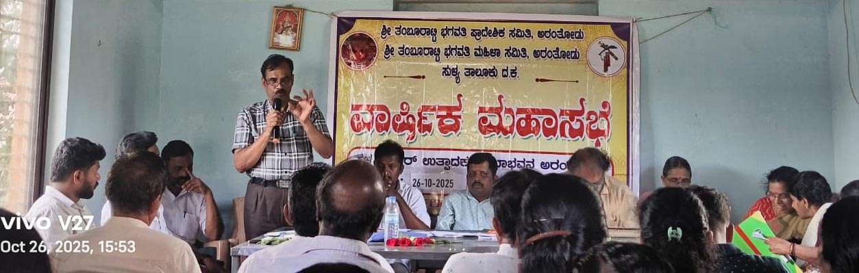 ಶ್ರೀ ತಂಬುರಾಟಿ ಭಗವತಿ ಪ್ರಾದೇಶಿಕ ಸಮಿತಿ ಅರoತೋಡು ಮತ್ತು ಮಹಿಳಾ ಸಮಿತಿ ಅರಂತೋಡು ಇದರ ಜಂಟಿ ವಾರ್ಷಿಕ ಮಹಾಸಭೆ ಯು ಅ.26ರಂದು ರಬ್ಬರ್ ಉತ್ಪಾದಕರ ಸಂಘದ ಸಭಾ ಭವನ ಆರಂತೋಡಿನಲ್ಲಿ ಶ್ರೀ ತಂಬುರಾಟಿ ಭಗವತಿ ಪ್ರಾದೇಶಿಕ ಸಮಿತಿ ಅರoತೋಡು ಇದರ ಅಧ್ಯಕ್ಷ ರಾದ ಪ್ರದೀಪ್. ಕೆ ರವರ ಅಧ್ಯಕ್ಷತೆಯಲ್ಲಿ ನಡೆಯಿತು.