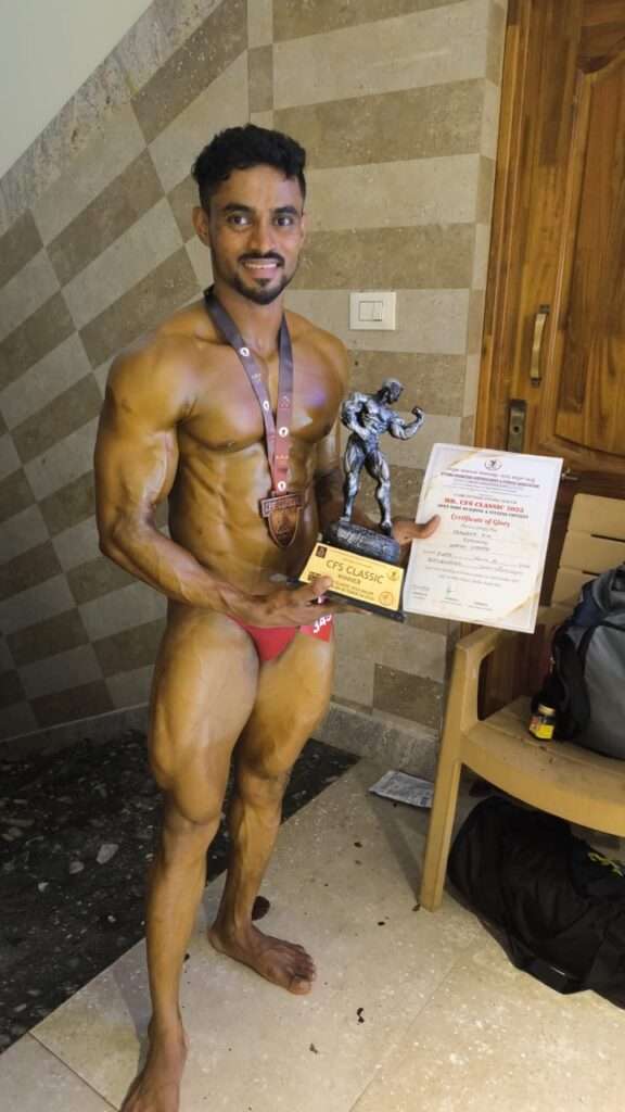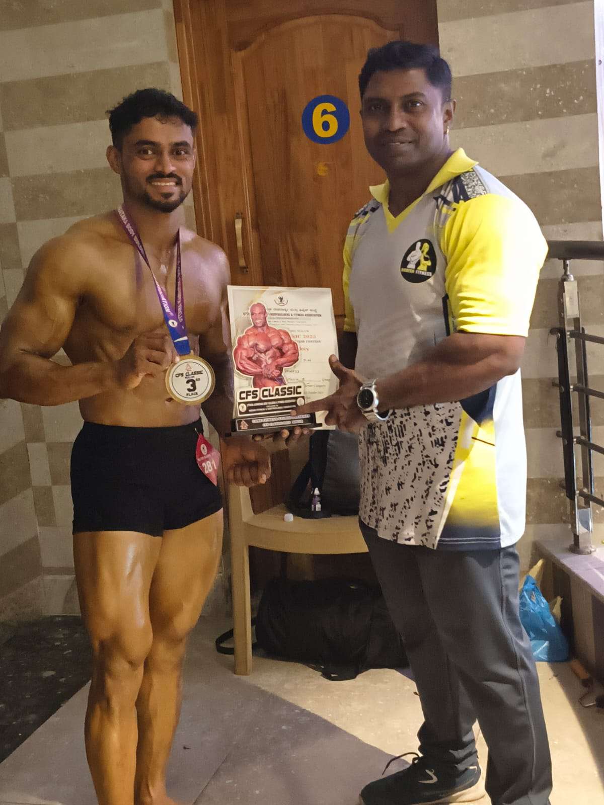ಬೆಂಗಳೂರು ನಲ್ಲಿ ನಡೆದ ಸಿ.ಎಫ್.ಸಿ ಕ್ಲಾಸಿಕ್ – 2025 ರಾಜ್ಯ ಮಟ್ಟದ ಬಾಡಿ ಬಿಲ್ಡಿಂಗ್ ಸ್ಪರ್ಧೆಯಲ್ಲಿ ಹರೀಶ್ ಫಿಟ್ನೆಸ್ ವಿದ್ಯಾರ್ಥಿ ಪ್ರವೀಣ್ ಪಾನತಿಲ ಅವರಿಗೆ ಸಿ.ಎಫ್.ಸಿ ಕ್ಲಾಸಿಕ್ ಸೀನಿಯರ್ -3ನೇ ಸ್ಥಾನ ಹಾಗೂ ಸಿ.ಎಫ್.ಸಿ ಕ್ಲಾಸಿಕ್ ಸೀನಿಯರ್ ಬಾಡಿ ಬಿಲ್ಡಿಂಗ್ -5ನೇ ಸ್ಥಾನ