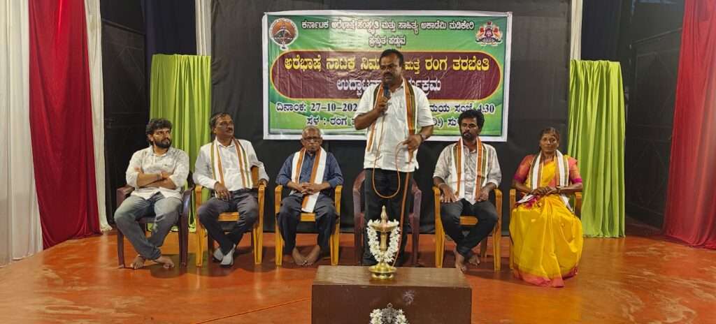 ಕರ್ನಾಟಕ ಅರೆಭಾಷೆ ಮತ್ತು ಸಾಹಿತ್ಯ ಅಕಾಡೆಮಿ ಮಡಿಕೇರಿ ಪ್ರಸ್ತುತ ಪಡಿಸುವ ಅರೆಭಾಷೆ ನಾಟಕ ನಿರ್ಮಾಣ ಮತ್ತು ರಂಗ ತರಬೇತಿಯ ಉದ್ಘಾಟನಾ ಕಾರ್ಯಕ್ರಮವು ಅ.27 ರಂದು ಸುಳ್ಯದ ರಂಗಮಯೂರಿ ಕಲಾಶಾಲೆಯಲ್ಲಿ ನಡೆಯಿತು.