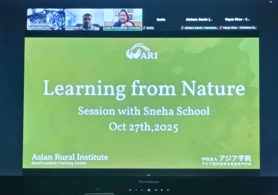 ಜಪಾನಿನ ಏಷಿಯನ್ ರೂರಲ್ ಇನ್ ಸ್ಟಿಟ್ಯೂಟ್ (ARI) ನ ಸಂಶೋಧಕಿ ಮನೋಸಿ ಸ್ಯಾನ್ ಅವರು ಅ.27ರಂದು ಜಪಾನಿನ ತಮ್ಮ ಸಂಸ್ಥೆಯಿಂದ ಸುಳ್ಯದ ಸ್ನೇಹ ಶಿಕ್ಷಣ ಸಂಸ್ಥೆಯ ವಿದ್ಯಾರ್ಥಿಗಳೊಂದಿಗೆ “Learning from Nature” ಎಂಬ ವಿಷಯದಲ್ಲಿ ವಿಚಾರ ವಿನಿಮಯ ಮಾಡಿದರು.