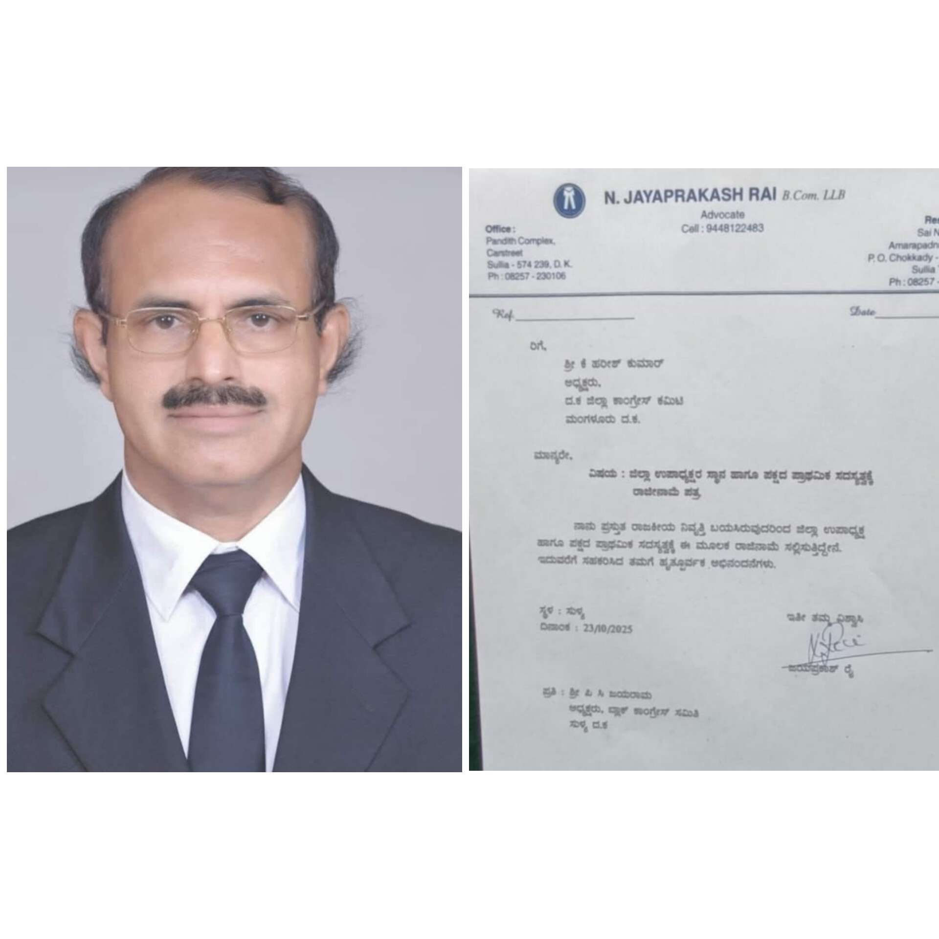 ಸುಳ್ಯ ಬ್ಲಾಕ್ ಕಾಂಗ್ರೆಸ್ ಮಾಜಿ ಅಧ್ಯಕ್ಷ ಹಾಗೂ ದ.ಕ. ಜಿಲ್ಲಾ ಕಾಂಗ್ರೆಸ್ ಉಪಾಧ್ಯಕ್ಷ ಎನ್.ಜಯಪ್ರಕಾಶ್ ರೈಯವರು ರಾಜಕೀಯದಿಂದ ನಿವೃತ್ತಿ ಪ್ರಕಟಿಸಿದ್ದಾರೆ.