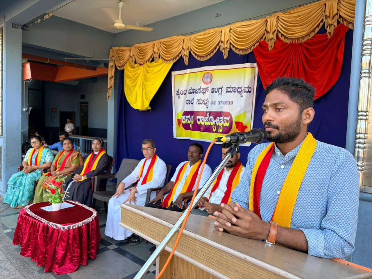 ಸೈಂಟ್ ಜೋಸೆಫ್ ಆಂಗ್ಲ ಮಾಧ್ಯಮ ಶಾಲೆ ಸುಳ್ಯ ಇಲ್ಲಿ ಕನ್ನಡ ರಾಜ್ಯೋತ್ಸವ ಆಚರಣೆ ನಡೆಯಿತು. ಪ್ರಾರ್ಥನಾ ವಿಧಿಯೊಂದಿಗೆ ಸಭೆ ಪ್ರಾರಂಭಗೊಂಡಿತು. ನಂತರ ಧ್ವಜಾರೋಹಣ ನೆರವೇರಿಸಿ ನಾಡಗೀತೆ ಹಾಡಲಾಯಿತು.