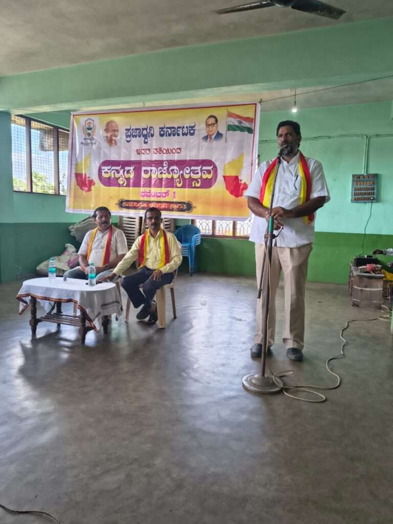 ಪ್ರಜಾಧ್ವನಿ ಕರ್ನಾಟಕ ವತಿಯಿಂದ ಇಂದು ಸುಳ್ಯದ ಶಿವಕೃಪಾ ಸಭಾಂಗಣದಲ್ಲಿ ಕನ್ನಡ ರಾಜ್ಯೋತ್ಸವ ಕಾರ್ಯಕ್ರಮ ಅಶೋಕ ಎಡಮಲೆ ಅಧ್ಯಕ್ಷತೆಯಲ್ಲಿ ನಡೆಯಿತು. ಕಾರ್ಯಕ್ರಮದಲ್ಲಿ ಖ್ಯಾತ ವ್ಯಂಗ್ಯಚಿತ್ರಕಾರ ದಿನೇಶ್ ಕುಕ್ಕುಜಡ್ಕ ಅವರು ಮುಖ್ಯ ಅತಿಥಿಯಾಗಿ ಭಾಗವಹಿಸಿ ಪ್ರಧಾನ ಭಾಷಣ ಮಾಡಿದರು. ಅವರು ಮಾತನಾಡುತ್ತಾ, ಕನ್ನಡ ಭಾಷೆಯ ಬೆಳವಣಿಗೆಯ ದರ ಈಗ ಶೇಕಡಾ 3.73 ರಷ್ಟು ಮಾತ್ರ ಇದ್ದು, ಅದು ಇನ್ನಷ್ಟು ಕುಸಿಯದಂತೆ ಕನ್ನಡಿಗರು ಎಚ್ಚೆತ್ತುಕೊಂಡು ಕನ್ನಡವನ್ನು ಉಳಿಸಿ ಬೆಳೆಸುವ ಜವಾಬ್ದಾರಿ ಹೊರಬೇಕು. ಕನ್ನಡ ಮತ್ತು ಇಂಗ್ಲಿಷ್ ಭಾಷೆಗಳನ್ನು ನಮ್ಮ ಎಡ ಬಲಗಳಲ್ಲಿ ಹಾಗೂ ಮನೆಭಾಷೆ, ಆಡುಭಾಷೆಗಳನ್ನು ಅಂತರಂಗದಲ್ಲಿ ಇಟ್ಟುಕೊಂಡು ಬಳಕೆ ಮಾಡಬೇಕು ಎಂದು ಸಲಹೆ ನೀಡಿದರು.