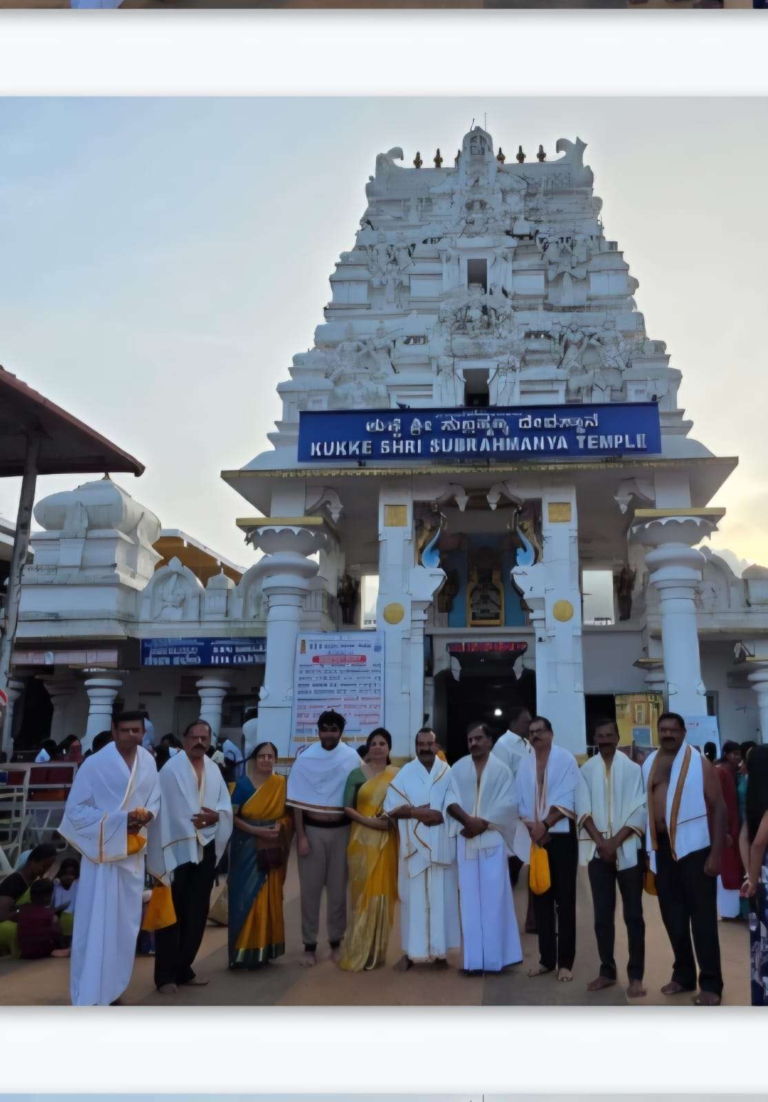 ಅಕಾಡೆಮಿ ಆಫ್ ಲಿಬರಲ್ ಎಜ್ಯುಕೇಶನ್ ಬಿ ಟೀಮ್ ಅಧ್ಯಕ್ಷ ಡಾ.ರೇಣುಕಾಪ್ರಸಾದ್ ಕೆ.ವಿ. ಹಾಗೂ ಅವರ ಮನೆಯವರು, ಕುಕ್ಕೆ ಸುಬ್ರಹ್ಮಣ್ಯ ದೇವರಿಗೆ ಸಮರ್ಪಿಸುವ ಬೆಳ್ಳಿರಥವನ್ನು ಸ್ವೀಕರಿಸುವುದಕ್ಕೆ ಕೋಟೇಶ್ವರಕ್ಕೆ ಹೊರಡುವ ಮೊದಲು ಇಂದು ಬೆಳಿಗ್ಗೆ ಕುಕ್ಕೆ ಸುಬ್ರಹ್ಮಣ್ಯ ದೇವಸ್ಥಾನಕ್ಕೆ ಹೋಗಿ ಪ್ರಾರ್ಥನೆ ಸಲ್ಲಿಸಿದರು.