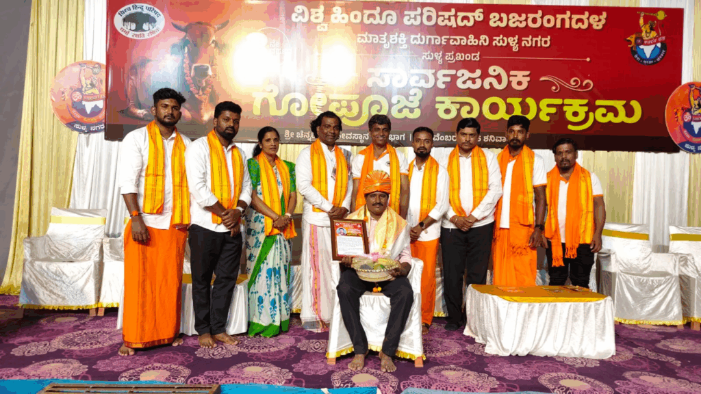 ವಿಶ್ವ ಹಿಂದೂ ಪರಿಷತ್ ಬಜರಂಗದಳ ಮಾತೃ ಶಕ್ತಿ ದುರ್ಗಾ ವಾಹಿನಿ ಸುಳ್ಯ ನಗರ ಸುಳ್ಯ ಪ್ರಖಂಡ ಇದರ ವತಿಯಿಂದ 3 ನೇ ವರ್ಷದ ಸಾರ್ವಜನಿಕ ಗೋಪೂಜೆ ಕಾರ್ಯಕ್ರಮವು ಚೆನ್ನಕೇಶವ ದೇವಸ್ಥಾನದ ಮುಂಭಾಗದ ಮೈದಾನದಲ್ಲಿ ನ.1ರಂದು ನಡೆಯಿತು.