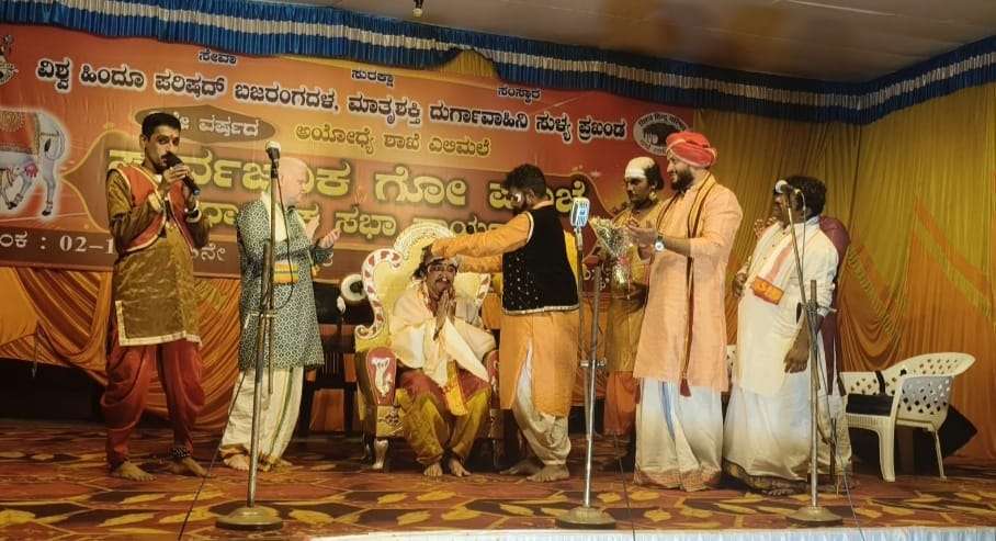 ನ. 2 ರಂದು ಎಲಿಮಲೆ ಜ್ಞಾನದೀಪ ವಿದ್ಯಾಸಂಸ್ಥೆಯ ವಠಾರದಲ್ಲಿ ನಡೆದ ಸಾರ್ವಜನಿಕ ಗೋಪೂಜಾ ಕಾರ್ಯಕ್ರಮದ ವೇಳೆ ಸಾಂಸ್ಕೃತಿಕ ಪ್ರದರ್ಶನ ನೀಡಲು ಆಗಮಿಸಿದ್ದ ಸಂದರ್ಭ ತಂಡದ ಯಕ್ಷ ತೆಲಿಕೆ ತಂಡದ ಮುಖ್ಯಸ್ಥ, ಕಲಾವಿದ ದಿನೇಶ್ ಕೋಡಪದವು, ಭಾಗವತ ಧೀರಜ್ ರೈ ಸಂಪಾಜೆ, ಕಲಾವಿದರಾದ ಪ್ರಜ್ವಲ್ ಗುರುವಾಯನಕೆರೆ, ದಿನೇಶ್ ರೈ ಕಡಬ ಸನ್ಮಾನ ಕಾರ್ಯಕ್ರಮ ನೆರವೇರಿಸಿದರು.
