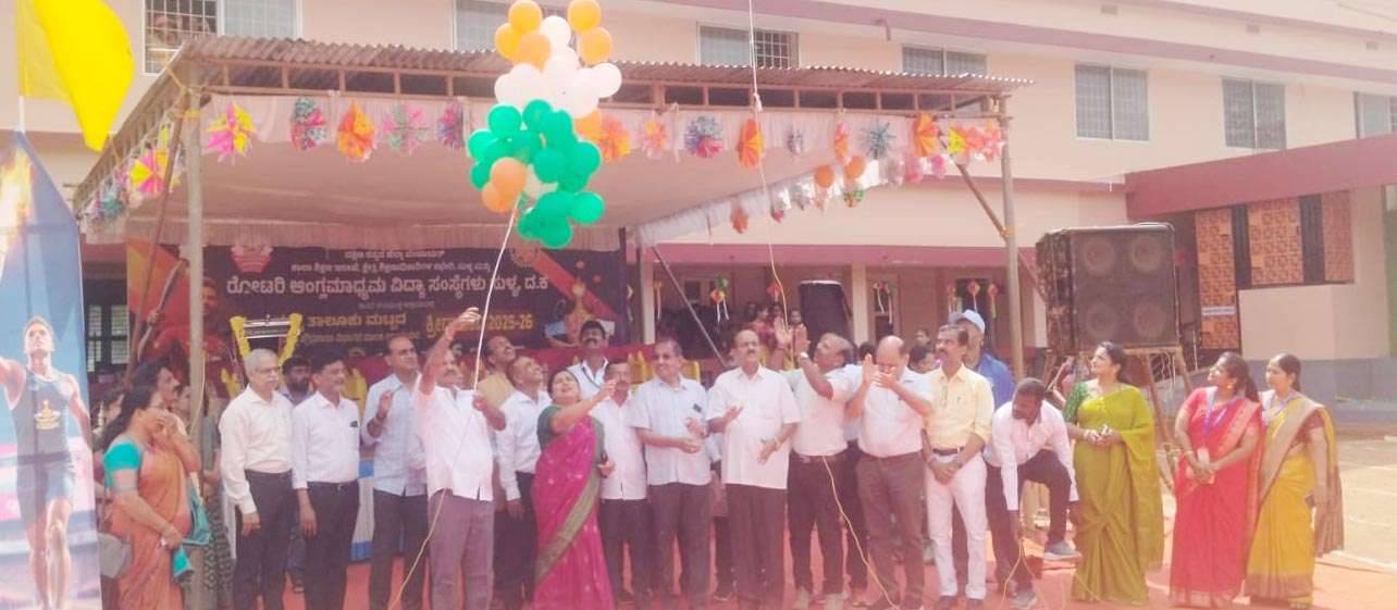ಶಾಲಾ ಶಿಕ್ಷಣ ಇಲಾಖೆ, ಕ್ಷೇತ್ರ ಶಿಕ್ಷಣಾಧಿಕಾರಿಗಳ ಕಛೇರಿ, ರೋಟರಿ ಆಂಗ್ಲ ಮಾಧ್ಯಮ ವಿದ್ಯಾಸಂಸ್ಥೆಗಳು ಸುಳ್ಯ ಇವರ ಸಹಯೋಗದಲ್ಲಿ, ನವೆಂಬರ್ ೩ ರಂದು ಪ್ರಾಥಮಿಕ ಹಾಗೂ ಪ್ರೌಢ ಶಾಲಾ ವಿಭಾಗದ ಬಾಲಕ ಬಾಲಕಿಯರ ವಿಭಾಗದ ಕ್ರೀಡಾಕೂಟದ ಉದ್ಘಾಟನಾ ಸಮಾರಂಭ ರೋಟರಿ ಆಂಗ್ಲ ಮಾಧ್ಯಮ ವಿದ್ಯಾಸಂಸ್ಥೆಯಲ್ಲಿ ನಡೆಯಿತು.