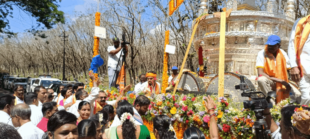 ಡಾ.ಕೆ.ವಿ.ರೇಣುಕಾಪ್ರಸಾದರು ಕುಕ್ಕೆ ಸುಬ್ರಹ್ಮಣ್ಯ ದೇವರಿಗೆ ಸಮರ್ಪಿಸಲಿರುವ ಬೆಳ್ಳಿರಥ ನ. 5 ರಂದು ಸುಳ್ಯದಿಂದ ಹೊರಟು ದುಗ್ಗಲಡ್ಕದ ಮೂಲಕ ಕುಕ್ಕೆ ಸುಬ್ರಹ್ಮಣ್ಯಕ್ಕೆ ತೆರಳಿತು.