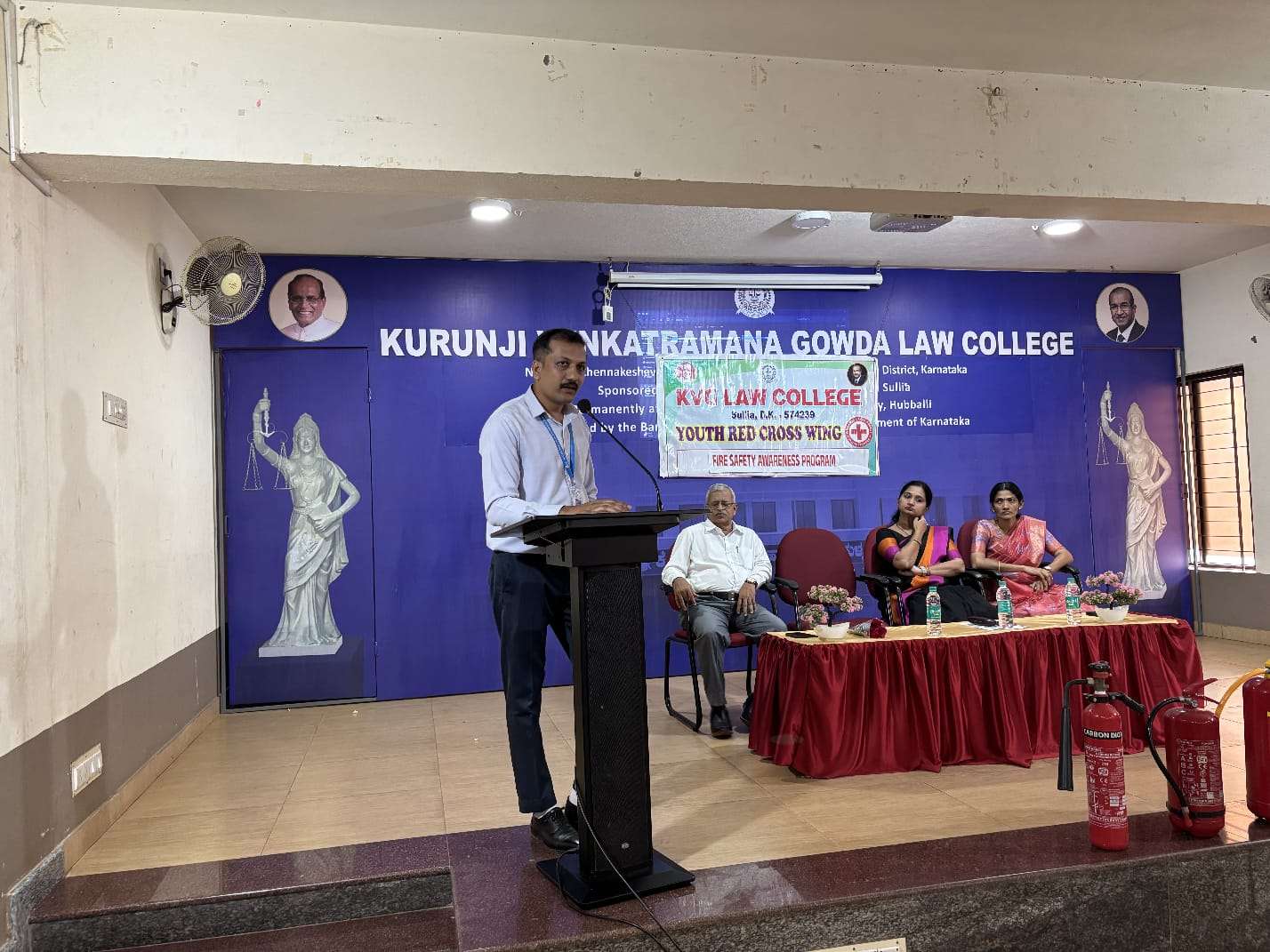 ಕೆ.ವಿ.ಜಿ ಕಾನೂನು ಮಹಾವಿದ್ಯಾಲಯದಲ್ಲಿ ನ. 6ರಂದು ಕಾಲೇಜಿನ ರೆಡ್ ಕ್ರಾಸ್ ಘಟಕದ ವತಿಯಿಂದ ಅಗ್ನಿ ಸುರಕ್ಷತಾ ಮಾಹಿತಿ ಮತ್ತು ಪ್ರಾತ್ಯಕ್ಷಿಕೆ ನಡೆಯಿತು. ಅಗ್ನಿ ಅವಘಡ ಮತ್ತು ಸುರಕ್ಷತೆಯ ಬಗ್ಗೆ ಕೆ.ವಿ.ಜಿ ವೈದ್ಯಕೀಯ ಕಾಲೇಜು ಮತ್ತು ಆಸ್ಪತ್ರೆಯ ಅಗ್ನಿ ಸುರಕ್ಷತಾ ವಿಭಾಗದ ಅಧಿಕಾರಿ, ಮದನ್ ಧರ್ಮ ಮಾಹಿತಿ ನೀಡಿದರು.