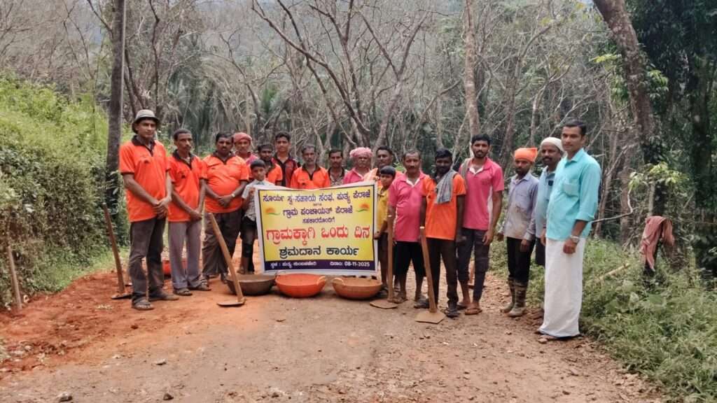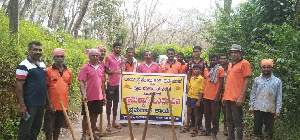ನ. 08 ರಂದು ಸೂರ್ಯ ಸ್ವಸಹಾಯ ಸಂಘದ ವತಿಯಿಂದ ಗ್ರಾಮ ಪಂಚಾಯತ್ ಪೆರಾಜೆಯ ಸಹಕಾರದೊಂದಿಗೆ “ಗ್ರಾಮಕ್ಕಾಗಿ ಒಂದು ದಿನ” ಅಭಿಯಾನ ಹಮ್ಮಿಕೊಳ್ಳಲಾಯಿತು. ಈ ಪ್ರಯುಕ್ತ ಪುತ್ಯದಿಂದ ಕುಂಬಳಚೇರಿ ತನಕ ರಸ್ತೆ ದುರಸ್ತಿ ಶ್ರಮದಾನ ಕಾರ್ಯವನ್ನು ಮಾಡಲಾಯಿತು. ಸೂರ್ಯ ಸ್ವಸಹಾಯ ಸಂಘದ ಸರ್ವ ಸದಸ್ಯರು ಭಾಗವಹಿಸಿದ್ದರು. ಈ ಸಂದರ್ಭದಲ್ಲಿ ಗ್ರಾಮ ಪಂಚಾಯತ್ ಸದಸ್ಯರಾದ ಪ್ರವೀಣ್ ಮಜಿಕೋಡಿ ಹಾಗೂ ಹಾಗೂ ಶುಭಾಶ್ಚಂದ್ರ ಬಂಗಾರಕೋಡಿ ಅವರು ಉಪಸ್ಥಿತರಿದ್ದರು.