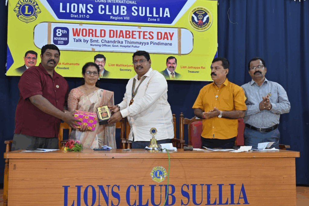 ಸುಳ್ಯ ಲಯನ್ಸ್ ಕ್ಲಬ್ ಇದರ ಆಶ್ರಯದಲ್ಲಿ ವಿಶ್ವ ಮಧುಮೇಹ ದಿನಾಚರಣೆ ನ.8ರಂದು ಸುಳ್ಯ ಲಯನ್ಸ್ ಸೇವಾ ಸದನದಲ್ಲಿ ನಡೆಯಿತು.