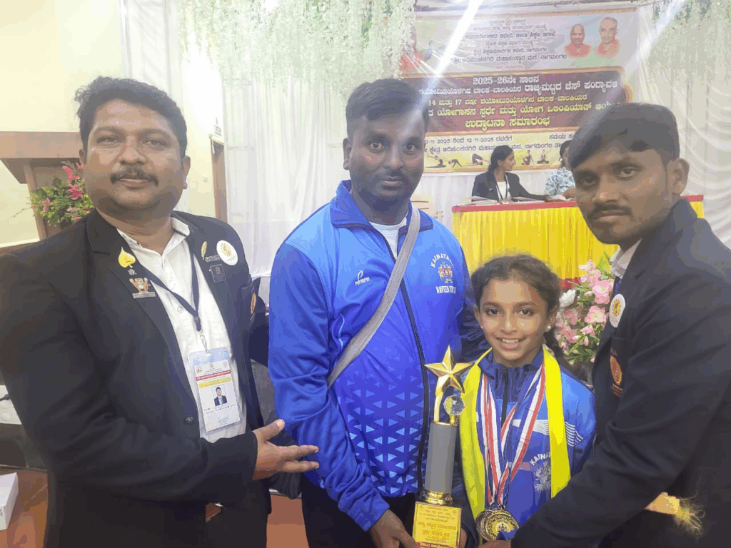 ಶ್ರೀ ಆದಿಚುಂಚನಗಿರಿ ಮಹಾಸಂಸ್ಥಾನ ಮಠ ನಾಗಮಂಗಲದಲ್ಲಿ ಶಾಲಾ ಶಿಕ್ಷಣ ಇಲಾಖೆ ನಡೆಸಿದ ೨೦೨೫ -೨೬ನೇ ಸಾಲಿನ ರಾಜ್ಯ ಮಟ್ಟದ ೧೪ ವಯೋಮಿತಿಯ ಬಾಲಕಿಯರ ವಿಭಾಗದ ಟ್ರಡೀಷನಲ್ (ಸಾಂಪ್ರದಾಯಿಕ) ಯೋಗಾಸನದಲ್ಲಿ ಪ್ರಥಮ ಸ್ಥಾನ ಪಡೆದು ಚಿನ್ನದ ಪದಕದೊಂದಿಗೆ ಮುಂದೆ ನಡೆಯುವ ಎಸ್ ಜಿ ಎಫ್ ಐ (School games federation of India) ಯೋಗ ಸ್ಪೋಟ್ಸ್ ಗೇಮ್ಸ್ಗೆ ಆಯ್ಕೆಯಾಗಿದ್ದಾಳೆ.
