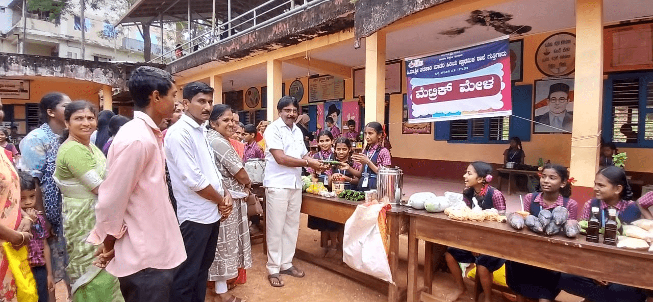 ಮೆಟ್ರಿಕ್ ಮೇಳವನ್ನು ಶಾಲಾ ಅಭಿವೃದ್ಧಿ ಮತ್ತು ಮೇಲುಸ್ತುವಾರಿ ಸಮಿತಿ ಅಧ್ಯಕ್ಷ ವೆಂಕಟ್ ದಂಬೆಕೋಡಿ ಮಕ್ಕಳಿಂದ ವಸ್ತುಗಳನ್ನು ಖರೀದಿ ಮಾಡುವ ಮೂಲಕ ಚಾಲನೆ ನೀಡಿದರು.