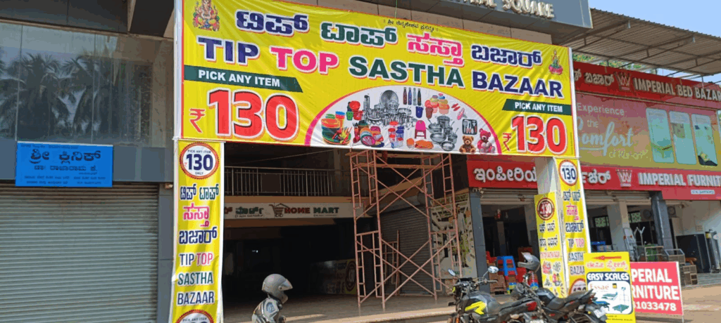 ಸುಳ್ಯದ ಶ್ರೀ ರಾಂ ಪೇಟೆಯ ಅಕ್ಷತಾ ಸೆಂಟ್ರಲ್ ಸ್ಕೈರ್ ನಲ್ಲಿ ಟಿಪ್ ಟಾಪ್ ಸಸ್ತಾ ಬಝಾರ್ ಆರಂಭಗೊಂಡಿದೆ. ಇಲ್ಲಿ ಪ್ರತೀ ಖರೀದಿಗೆ ರೂ.130 ಮಾತ್ರ.ಈ ಅವಕಾಶ ಕೆಲವೇ ದಿನಗಳು ಇರುತ್ತದೆ ಎಂದು ಮಾಲಕರು ತಿಳಿಸಿದ್ದಾರೆ.
