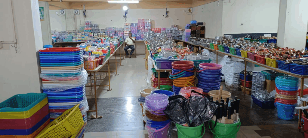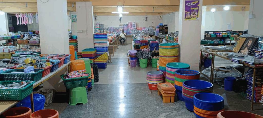 ಗಿಫ್ಟ್ ಐಟಂ, ಟಾಯ್ಸ್, ಪ್ಲಾಸ್ಟಿಕ್, ಸ್ಟೀಲ್ ಐಟಂಗಳು, ಫೈಬರ್ ಐಟಂಗಳು, ಮ್ಯಾಟ್ಗಳು, ಪಿಂಗಾಣಿ ಐಟಂಗಳು, ಲೇಡಿಸ್ ಹ್ಯಾಂಡ್ ಬ್ಯಾಗ್ಸ್, ಗಾಜಿನ ಐಟಂಗಳು, ಬೆಲ್ಟ್ ಗಳು, ಚಪ್ಪಲಿಗಳು, ಬಕೆಟ್ಸ್, ನೀರಿನ ಬಾಟಲ್, ತರಕಾರಿ ಸ್ಟ್ಯಾಂಡ್ ಹಾಗೂ ಇನ್ನು ಅನೇಕ 10,000 ರೀತಿಯ ವೆರೈಟಿ ಐಟಂಗಳು ದೊರೆಯುತ್ತವೆ.ಎಂದು ತಿಳಿಸಿದ್ದಾರೆ.