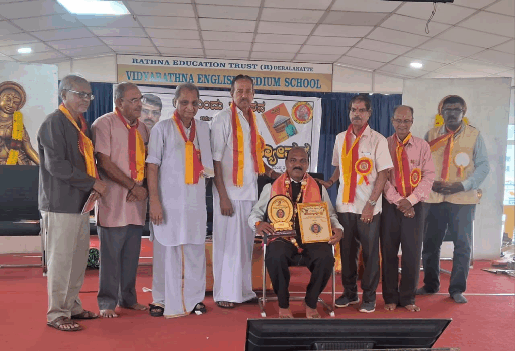 ಕಥಾ ಬಿಂದು ಪ್ರಕಾಶನ ವಿದ್ಯಾರತ್ನ ಆಂಗ್ಲ ಮಾಧ್ಯಮ ಶಾಲೆ ದೇರಳಕಟ್ಟೆ ಮಂಗಳೂರು ಇಲ್ಲಿ ಪಿ ವಿ ಪ್ರದೀಪ್ ಕುಮಾರ್ ಸಾರಥ್ಯದಲ್ಲಿ ಇತ್ತೀಚೆಗೆ ನಡೆದ ಸಾಹಿತ್ಯ ಉತ್ಸವ ಕಾರ್ಯಕ್ರಮದಲ್ಲಿ ಗಾಯಕ ವಿಜಯಕುಮಾರ್ ಸುಳ್ಯರವರಿಗೆ ಗಾಯನ ಶ್ರೀ- 2025 ಪ್ರಶಸ್ತಿ ನೀಡಿ ಸನ್ಮಾನಿಸಲಾಯಿತು.