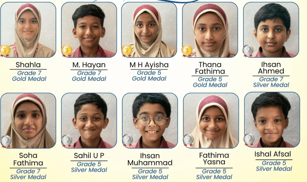 ಬೆಳ್ಳಿ ಪದಕಗಳನ್ನು ಕ್ರಮವಾಗಿ 7 ನೇ ಹಾಗೂ 5ನೇ ತರಗತಿ ವಿದ್ಯಾರ್ಥಿ ಗಳಾದ ಸೋಹ ಫಾತಿಮ, ಇಹಸ್ಸಾನ್ ಅಹ್ಮದ್, ಇಶಾನ್