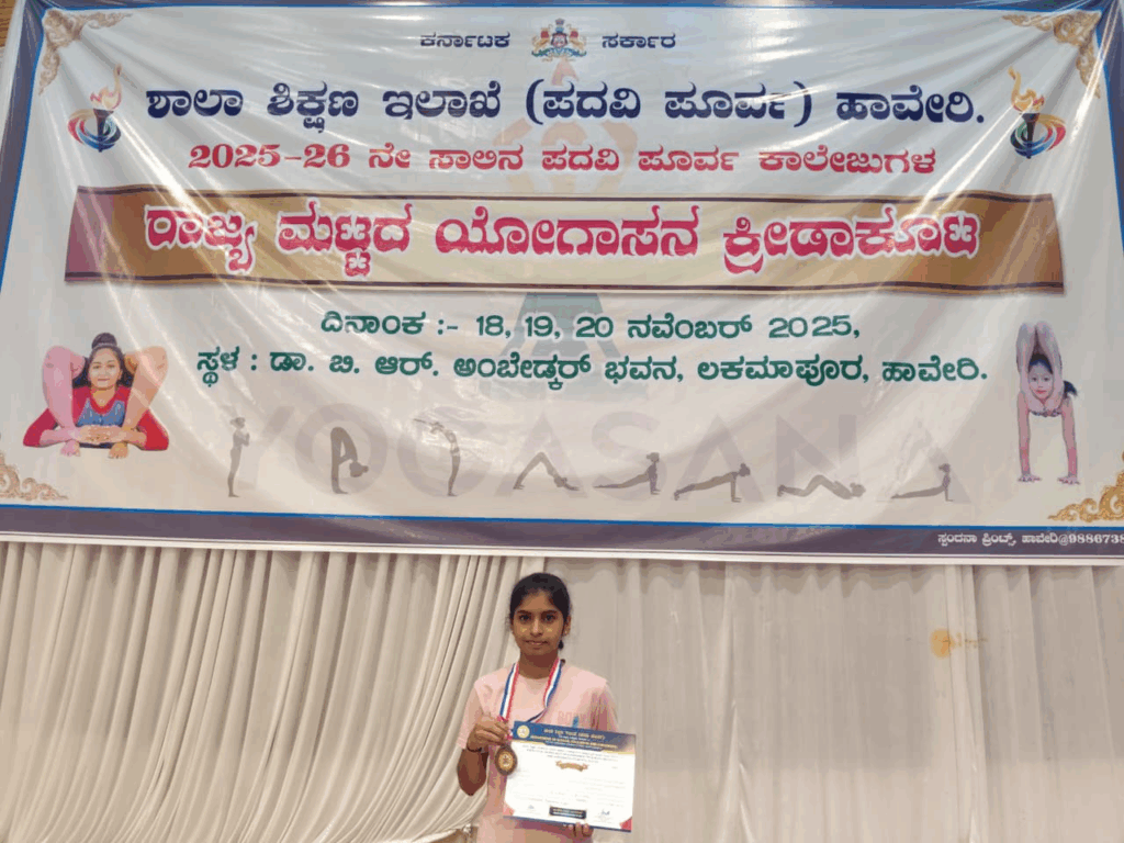 ನವೆಂಬರ್ 20 ರಂದು ಹಾವೇರಿಯಲ್ಲಿ ನಡೆದ ಕರ್ನಾಟಕ ಸರ್ಕಾರದ ಶಾಲಾ ಶಿಕ್ಷಣ ಪದವಿಪೂರ್ವ ಇಲಾಖೆಯು ಆಯೋಜಿಸಿದ್ದ ರಾಜ್ಯ ಮಟ್ಟದ ಪದವಿಪೂರ್ವ ಬಾಲಕ–ಬಾಲಕಿಯರ ಯೋಗಾಸನ ಸ್ಪರ್ಧೆಯಲ್ಲಿ ಸುಳ್ಯ ರೋಟರಿ ಸಂಯುಕ್ತ ಪದವಿಪೂರ್ವ ಕಾಲೇಜಿನ ವಿದ್ಯಾರ್ಥಿನಿ ಕು. ಕ್ಷಮಾ ತೃತೀಯ ಸ್ಥಾನ ಗಳಿಸಿ ಸಂಸ್ಥೆಗೆ ಹೆಮ್ಮೆ ತಂದಿದ್ದಾರೆ.