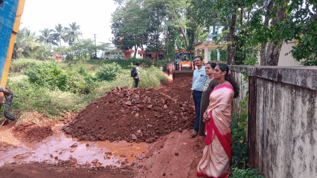 ಇಂದು ರಸ್ತೆಗೆ ಜೆಸಿಬಿ ಮುಖಾಂತರ ಚರಲ್ ಗಳನ್ನು ಹಾಕಿ ತಾತ್ಕಾಲಿಕವಾಗಿ ದುರಸ್ಥಿಪಡಿಸಲಾಯಿತು.