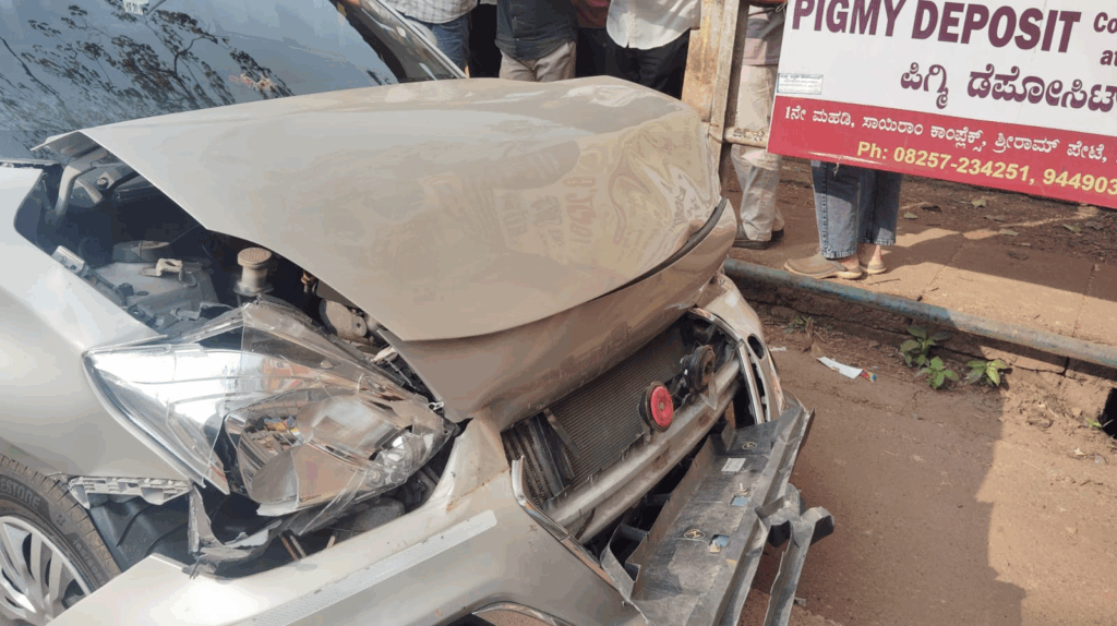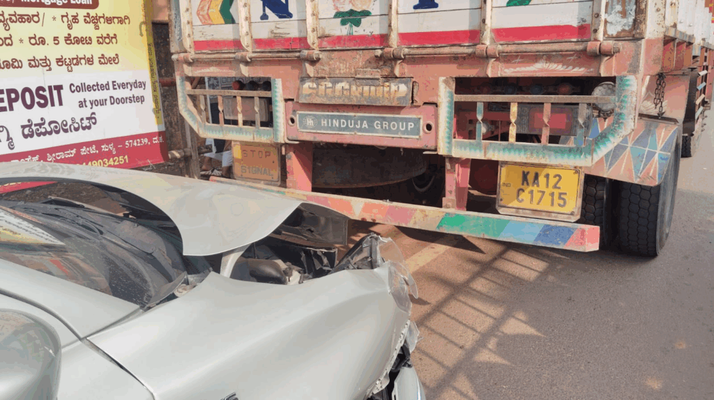 ಮಂಗಳೂರು ಕಡೆಯಿಂದ ಮೈಸೂರು ಕಡೆಗೆ ಹೋಗುತ್ತಿದ್ದ ಟೂರಿಸ್ಟ್ ಕಾರು ಸುಳ್ಯದ ಗಾಂಧಿನಗರ ಬಳಿ ಮುಂದಿನಿಂದ ಹೋಗುತ್ತಿದ್ದ ಲಾರಿಗೆ ಢಿಕ್ಕಿ ಹೊಡೆಯಿತು. ಪರಿಣಾಮ ಕಾರಿನ ಮುಂಭಾಗ ಜಖಂಗೊಂಡಿದ್ದು, ಕಾರಿನಲ್ಲಿದ್ದವರು ಯಾವುದೇ ಅಪಾಯವಿಲ್ಲದೆ ಪಾರಾಗಿದ್ದಾರೆಂದು ತಿಳಿದು ಬಂದಿದೆ.